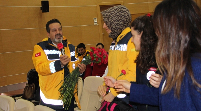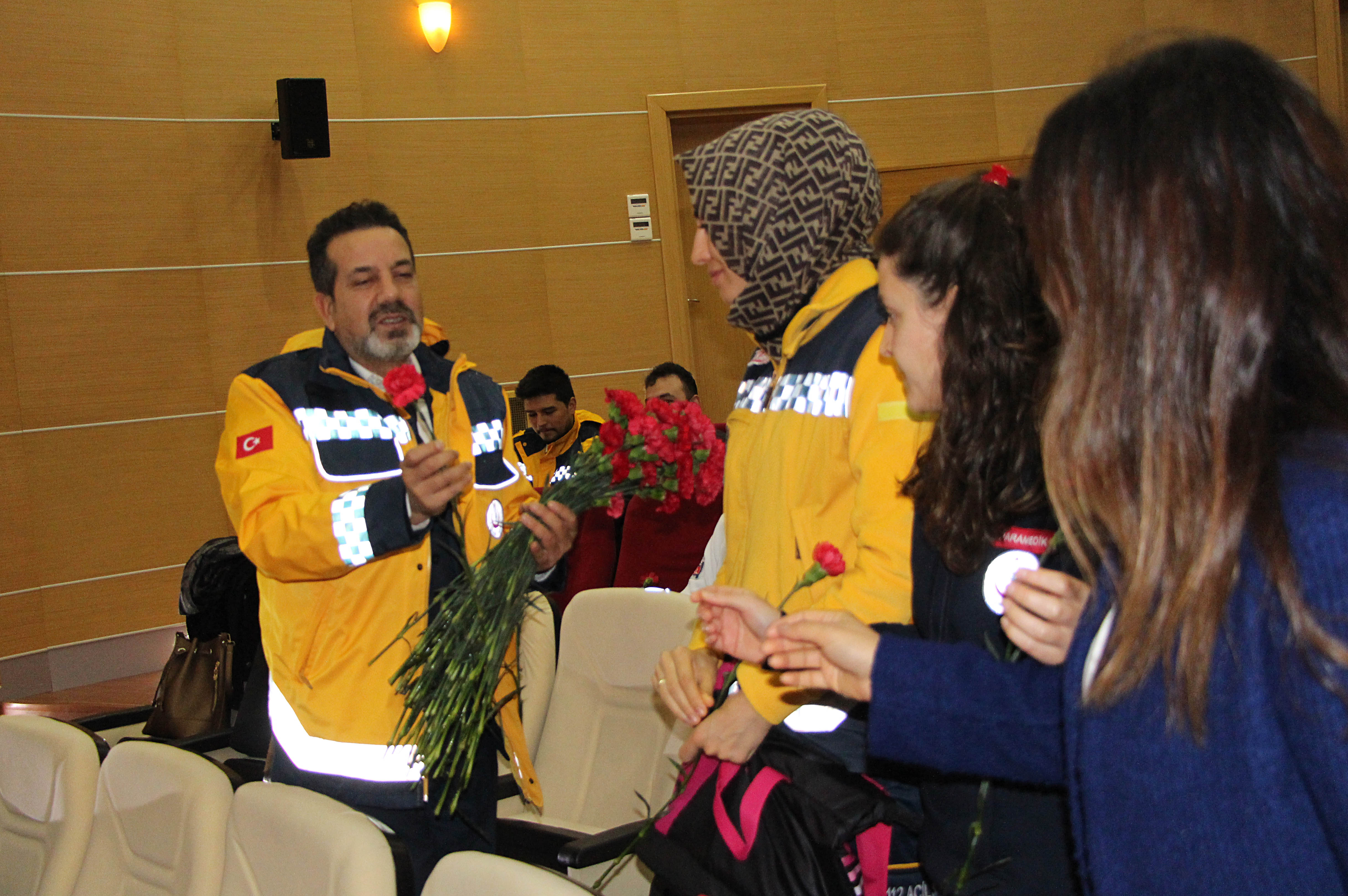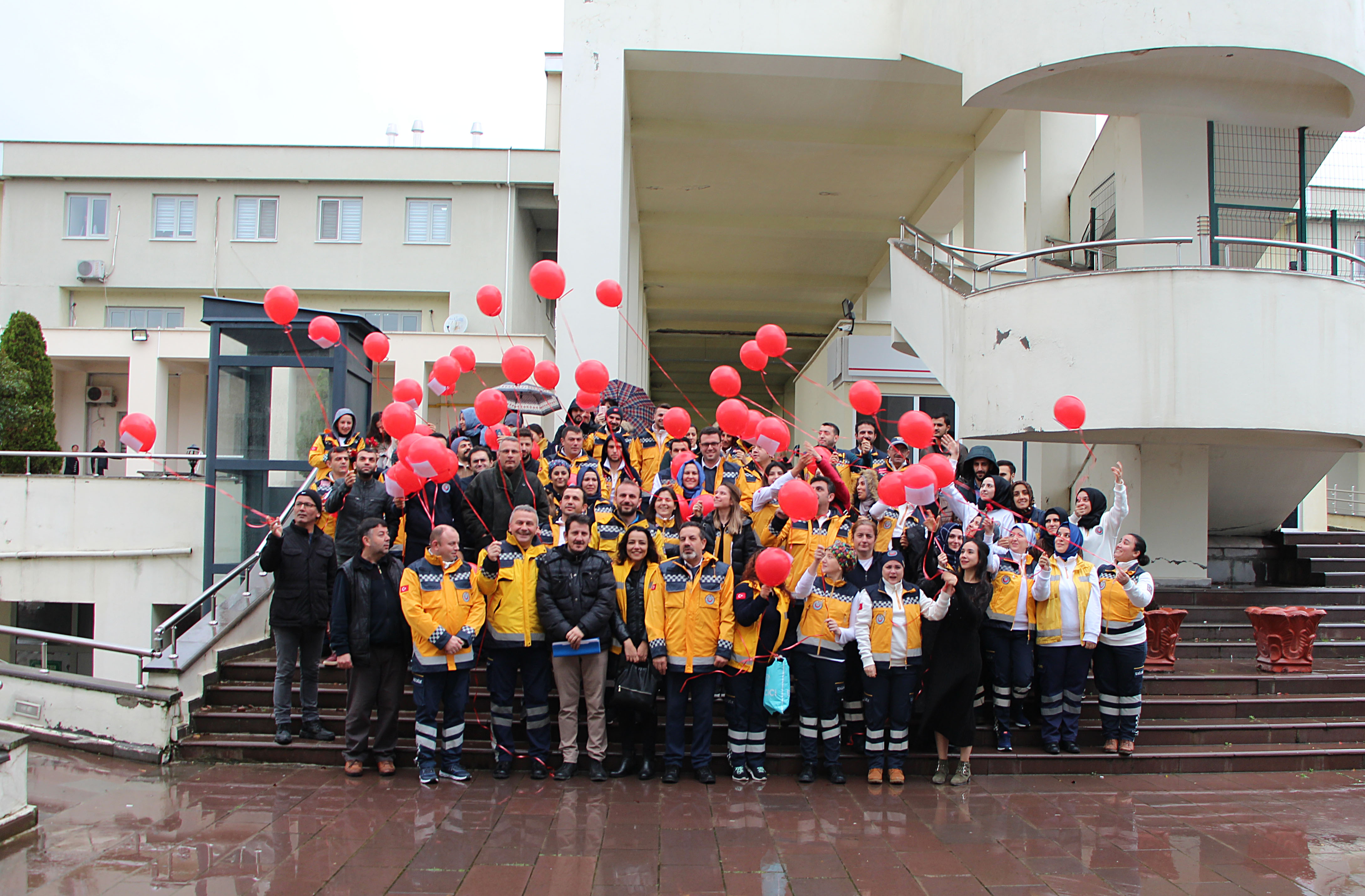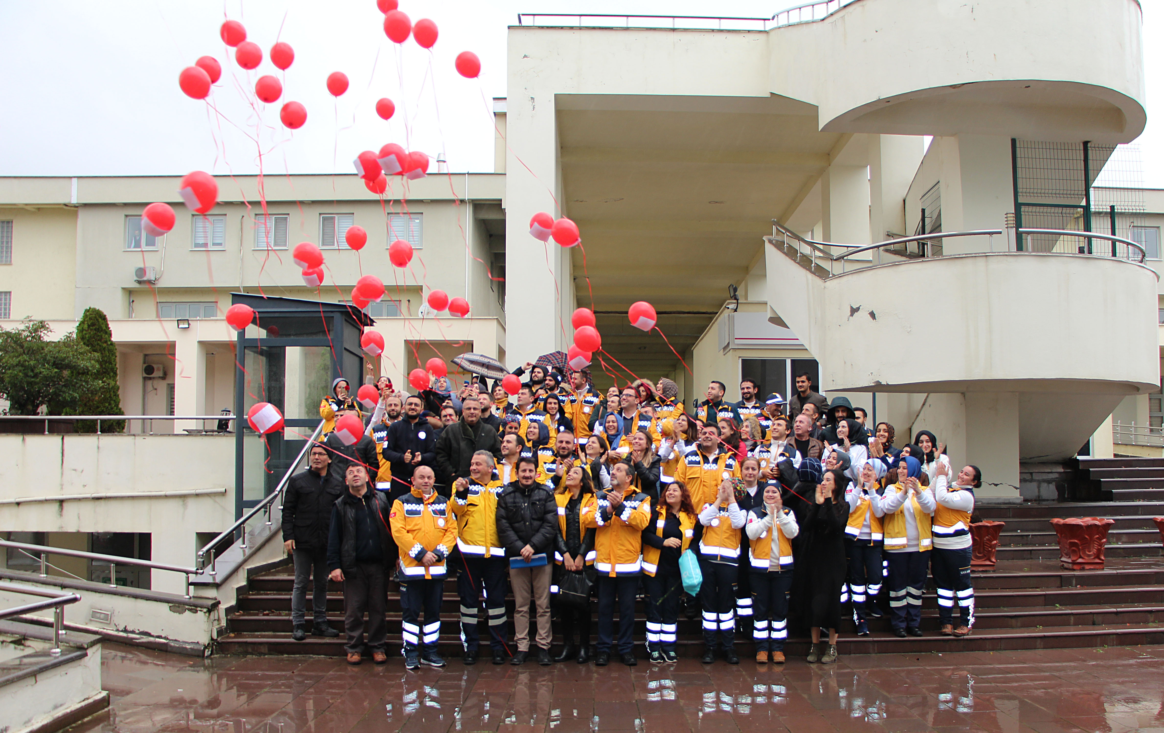 112 Acil Sağlık Hizmetleri Birimi tarafından organize edilen bir diğer etkinlik de Camili Resmi Daireler Kampüsü Konferans Salonunda personele yönelik eğitimlerle başladı. Mesleki alanda çalışırken yaşanan olaylara karşı hukuki haklarına yönelik 112 personeli bilgilendirildi. Eğitim programının ardından Acil Sağlık Hizmetleri Birim Uzmanı Doğan Öztürk, İl Ambulans Servisi Başhekimi Dr. Neslihan Karadeniz, 112 Saha Koordinatörü Hasan Büyükçolak tarafından personele karanfil dağıtıldı. Nöbette olan personele ile karanfil gönderildi. İl Sağlık Müdürü Doç. Dr. Aziz Öğütlü’nün tebrik mesajının iletildiği programın sonunda üzerlerinde Sakarya’da görev yapan tüm 112 istasyonlarının isimlerinin yazılı olduğu kırmızı balonlar 112 personeli tarafından gökyüzüne bırakıldı.