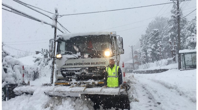 Sakarya Büyükşehir Belediyesi Yol Bakım ve Altyapı Koordinasyon Dairesi Başkanlığına bağlı ekipler ilçelerde devam eden yoğun kar yağışı ile mücadele konusunda aralıksız olarak çalışmalarını sürdürüyor. 40 iş makinesi ve 100 kişilik bir ekiple teyakkuzda olan Büyükşehir, kapalı olan mahalle yollarında ulaşımı sağlamak için çalışmalarına devam ediyor. Kar lastiği uyarısıYoğun kar yağışı görülen ilimizde zorunlu olunmadıkça araçları ile yola çıkılmaması gerektiğini ifade eden Yol Bakım ve Altyapı Koordinasyon Dairesi Başkanlığı, “Şehrimizde Pazar ve Pazartesi yoğun kar yağışı beklenmekte. Büyükşehir ve ilçe belediye ekipleri yoğun bir şekilde kapalı olan 52 köy yolunun 12 tanesini kullanıma açtı. Ana arterlerde de buzlanmanın önüne geçmek adına tuzlama çalışmalarımız devam ediyor. Kış lastiği olmayan araçlar trafikte önemli sorunların yaşanmasına sebep olabiliyor. Mal kayıplarının yanında can kayıplarına yaşanmasına kapı aralayacak bu araçlarla seyahat edilmemesi hususunda ayrıca bir hassasiyet beklediğimizi tüm vatandaşlarımıza duyuruyoruz” denildi. 12 mahalle yolu açıldıKapalı olan mahalle yollarında çalışmalar devam ettiğine yer verilen açıklamada, “İlçelerde yoğun kar yapışı sebebiyle 52 tane kapalı mahalle yolunun 12’si kullanıma açıldı. Açılan yolların tekrar kapanmaması için ekiplerimiz yoğun bir çalışma sürdürüyor. AFAD ve Sağlık İl Müdürlüğünden gelen ihbarlar doğrultusunda öncelik durumuna göre tüm ilçelerimizde ekiplerimiz çalışmalarına devam etmektedir.”