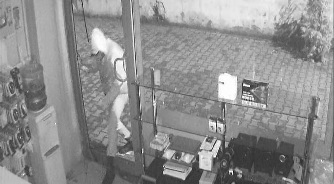 Adapazarı ilçesinde sabaha karşı bilgisayar dükkanına camını kırarak içeriye giren hırsız 20 saniye içerisinde 3 laptop çalarak kayıplara karıştı. Yaşanan hırsızlık olayı güvenlik kamerasına saniye saniye yansıdı.