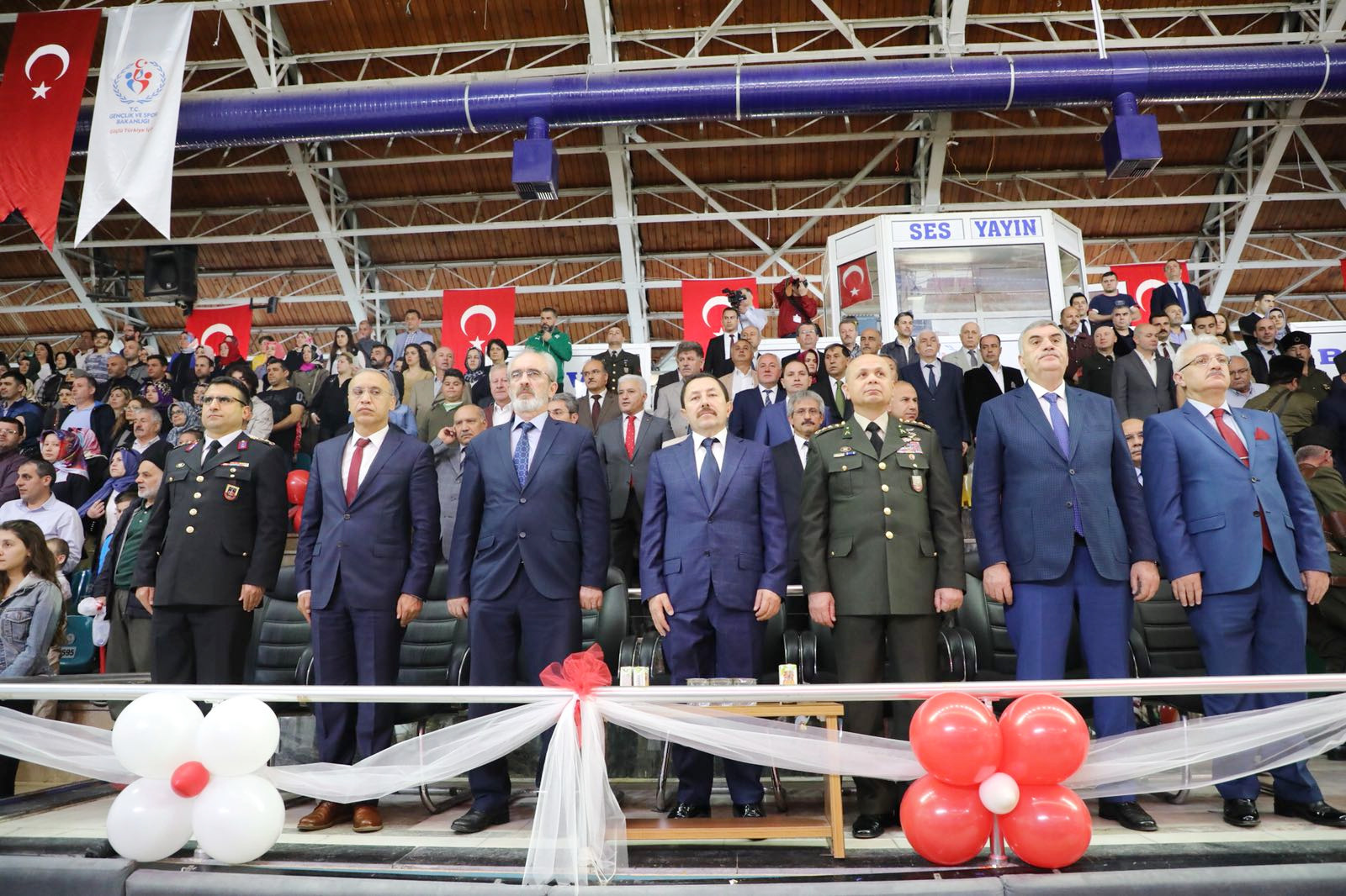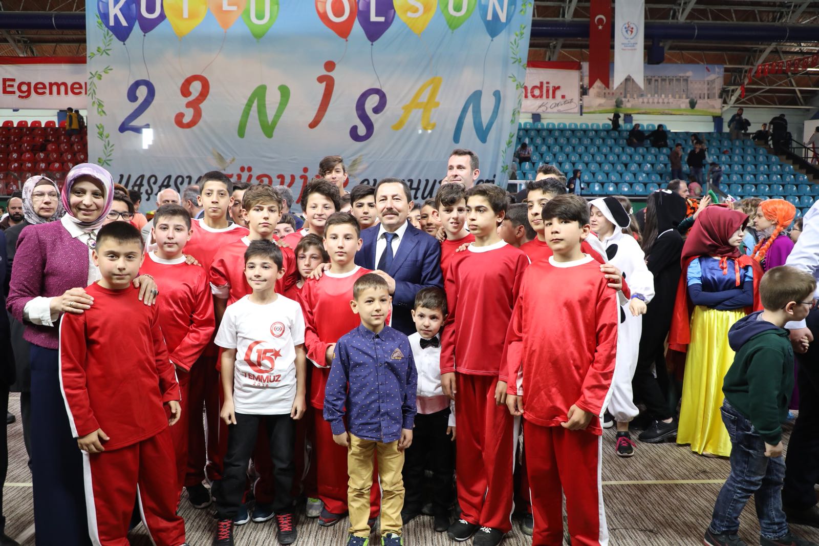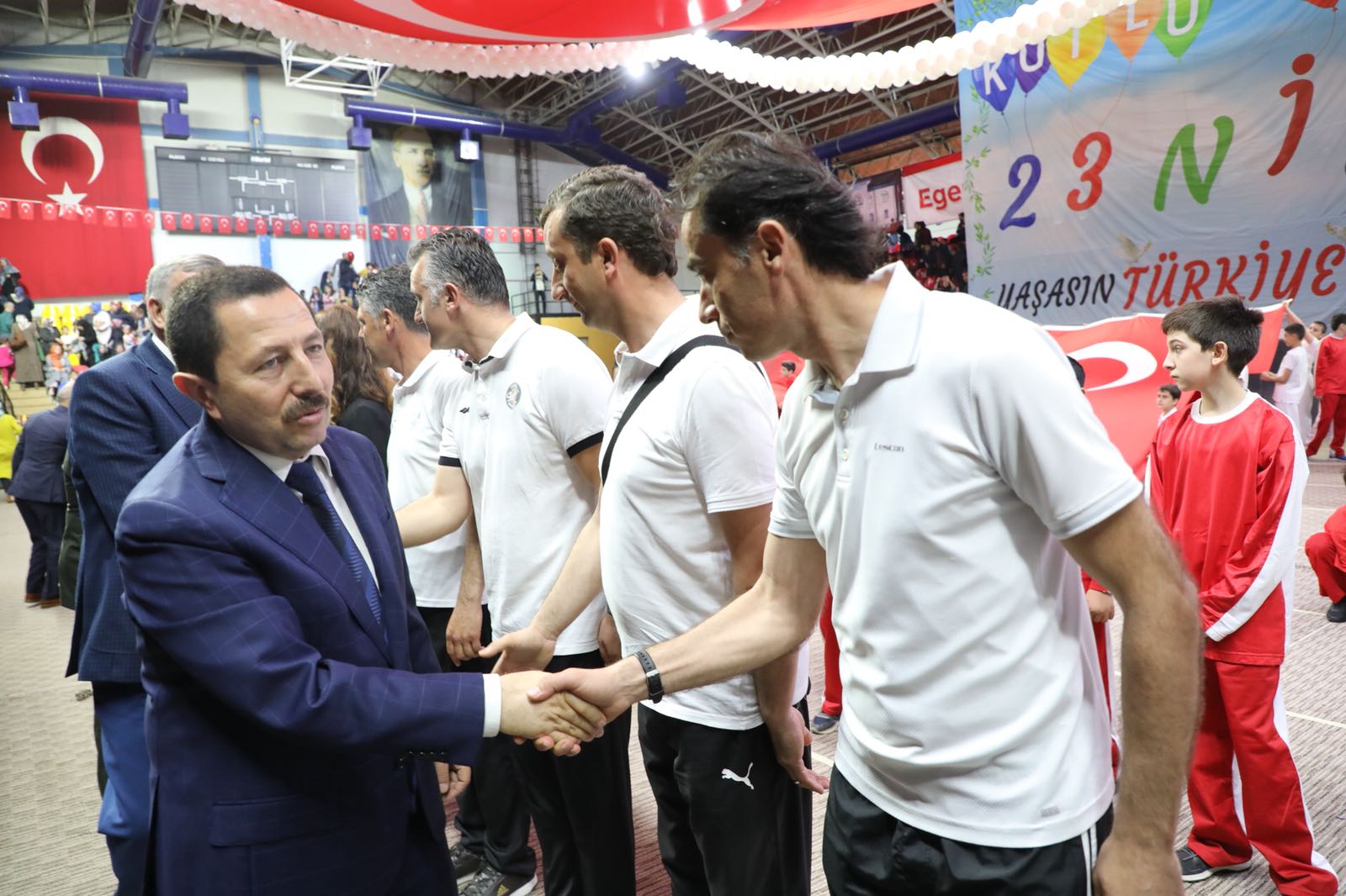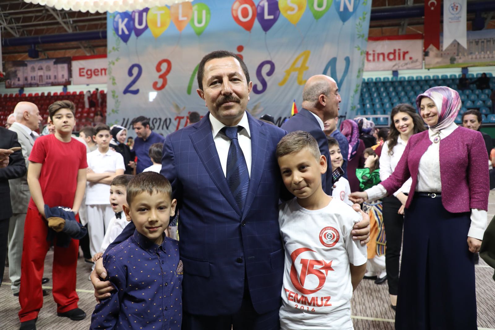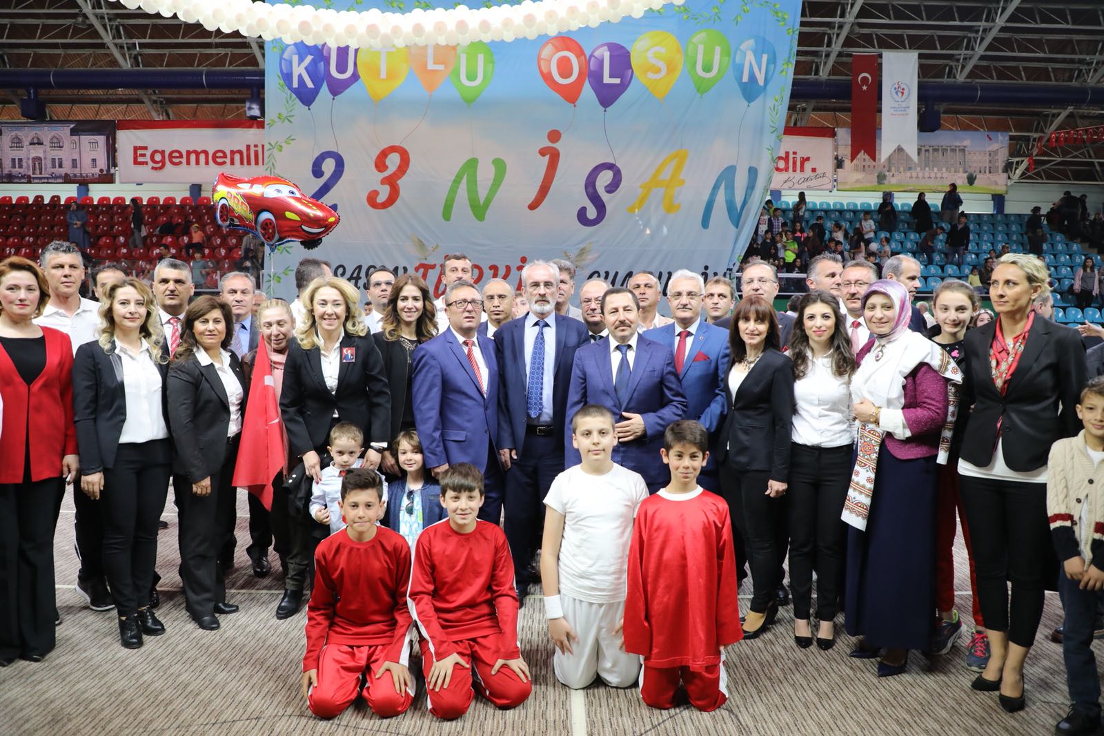 Atatürk Spor Salonundaki kutlama törenlerine vali İrfan Balkanlıoğlu’nun yanı sıra; sakarya Milletvekili Zihni Açba, Garnizon ve Tugay Komutanı P. Alb. Mustafa Cüneyt Arıkan, Büyükşehir Belediye Başkanı Zeki Toçoğlu, Cumhuriyet Başsavcısı Lütfi Dursun, Vali Yardımcıları, Kaymakamlar, İl Emniyet Müdürü Fatih Kaya, İl Jandarma Komutanı J. Alb. Cengiz Yiğit, kamu kurum ve kuruluşlarının yetkilileri, siyasi parti temsilcileri, Gaziler, öğretmen ve öğrenciler ile vatandaşlar katıldı.Atatürk Kapalı Spor Salonu önünde öğrenciler tarafından çiçeklerle karşılanan Vali Balkanlıoğlu, Milli Egemenliğimizin bütün dünyaya ilan edilişinin 98. yıldönümünde çocuklarımıza armağan edilen bu güzel günün Sakarya’da tam bir bayram havasında yaşandığını ifade etti.Salon içerisinde Saygı Duruşu ve İstiklal Marşının okunmasıyla başlayan program, günün anlam ve önemini belirten konuşmalarla devam etti.Mehteran takımının mini konseri ile ilimizdeki okulların yanı sıra, ülkemizden ve yurtdışından gelen öğrencilerden oluşan halk oyunları ekipleri ile dans gösterileri ayakta alkışlandı.Törenin sonunda Vali Balkanlıoğlu, gösteri alanına inerek kutlama programında görev alan öğrenciler ve öğretmenleri tebrik etti.