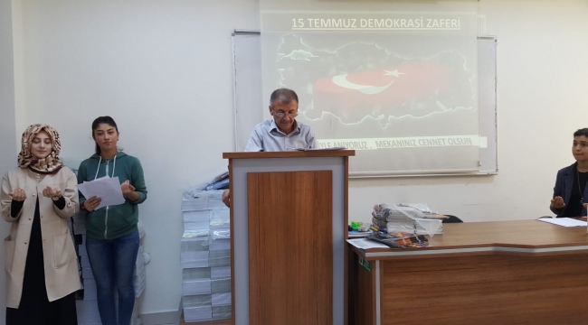 Öğretmenlerin ve çırak öğrencilerin katıldığı programda bir konuşma yapan adapazarı mesleki eğitim merkezi Müdürü Arif Türkyılmaz, ülkemizi esaret altına almaya çalışanların gerçekleştirmeye çalıştığı 15 temmuz darbe girişiminin milletimiz tarafından engellendiğini belirterek, 15 Temmuz şehitlerimizi rahmetle, gazilerimizi şükranla andığımızı ifade etti.Matematik Öğretmeni İlhan Yaman’ın duasını yaptırdığı 15 Temmuz Demokrasi ve Milli Birlik Günü programının sonunda, çırak öğrencilerin eğitim gördüğü Gülümse Yemek tarafından Aşure ikramı yapıldı.