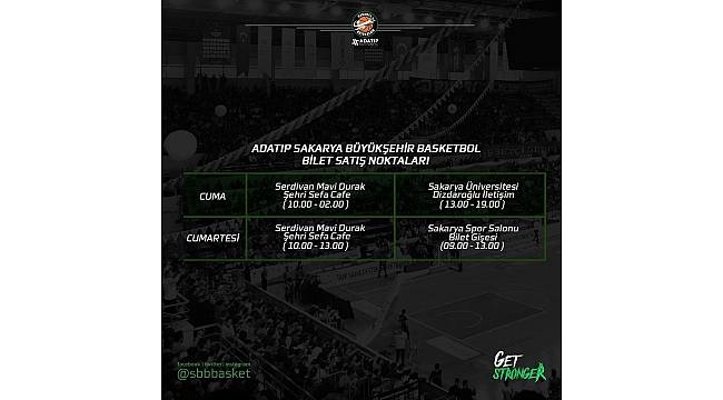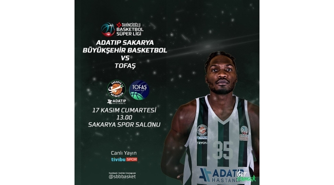 Adatıp Sakarya Büyükşehir Basketbol Spor Kulübü, Tahincioğlu Basketbol Süper Ligi’nin 7. haftasında Tofaş’ı konuk edecek. 17 Kasım Cumartesi günü Sakarya Spor Salonu’nda oynanacak kritik karşılaşma saat 13.00’da başlayacak. Tivibu Spor 2 ekranlarından canlı yayınlanacak mücadelede Adatıp Büyükşehir, ligde yakaladığı 3 maçlık galibiyet serisini taraftarlarının önünde sürdürmek istiyor. Yapılan açıklamada ise mücadele ise maç biletlerinin sakarya spor salonu ve Serdivan Mavi Durak’ta satışa sunulduğu ifade edildi.