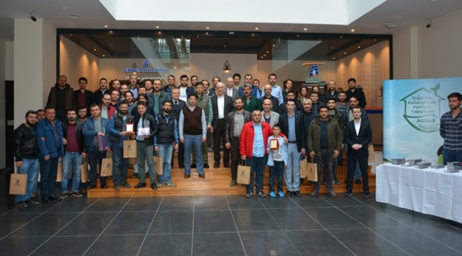AGDAŞ konferans salonundadüzenlenensertifikalı iç tesisat firma toplantısı 10 Mart 2017 tarihinde firma temsilcilerinin katılımıyla gerçekleşti. Toplantıya katılan firma yetkililerinin düşünce ve önerilerini dinleyen agdaŞ yöneticileri, kendi istek ve önerilerini de firma yetkilerine iletti. AGDAŞ Genel Müdürü Sn. Kenan DEMİR toplantıya katılan tüm firmalara teşekkür etti. Ele ele vererek Sakarya’da temiz havanın güvencesi olduklarını söyledi. Kaliteden ödün vermeden çalışmaya devam edeceklerini bu kapsamda iç tesisat firmalarının en önemli paydaşları olduğunu vurguladı. Bugüne kadar kazanılan başarıların hep birlikte kazanıldığını söyledi. 208 Binden (BBS) fazla aboneleri olduğunu gerek çağrı merkezi, gerek acil ekip personeliyle müşterileri en iyi hizmeti sunduklarını belirtti. Sektörde yaşanan sorunlara değinen Kenan DEMİR zorlukların birlikte hareket edilmesi halinde daha kolay aşılacağını belirtti. Doğal Gaz, En Çevreci ve Ucuz Yakıttır AGDAŞ ve ERDEM Holding tanıtım filmi gösterimi ile başlayan toplantıda firmaların 2016 yılı performans değerlendirmeleri yapıldı.Firmalara yeni uygulamalarla ilgili bilgi verildi. 7. Meslek komitesi başkanı Doğan ÇATALBAŞ firmaların AGDAŞ’tan taleplerini iletti. Toplantının ikinci kısmında ise; karşılık paylaşımların yanı sıra geliştirmeye açık yönlerin belirlenerek“Nasıl daha iyi hizmet veririz” sorusunun cevabını bulmak için firmalar ile karşılıklı görüş alış verişi yapıldı.Yapılan açıklamadayetkili firmalarınınAGDAŞ’ın en önemli paydaşları olduğunu, daha iyi hizmet vermek için kanun ve yönetmeliklere uygunhareket etmeleri gerektiği vurgulandı.Hedeflerinin kaliteli hizmet vererek, diğer yakıt türlerine göre daha çevreci ve güvenli olan doğal gazın kullanımı yaygınlaştırmak olduğu bilgisi verildi. 2016 Y ılın da en iyi firma performansıLonca Doğalgazdan 2016 yılı iç tesisat firmaları performans değerlendirme sistemine göre Lonca Doğalgaz’abirincilik, ÜÇAY Mühendisliğe ikincilik, Bilgen Doğalgaz Mühendisliğe de üçüncülük ödülleri verildi. Talep özeti ve firma randevu talep ekranındaki iyileştirme önerileriyle sistem geliştirmelerine için vermiş olduğu öneriden dolayı Detay Isı’dan GökhanDedeoğlu’na durumsal ödül verildi. Ayrıca Semgaz’dan Cihan Okur, Isınet’ten İsa Çalışkan, Ecoterm’den Ertan Kırsever’e proje onay kontrollerinde gösterdikleri üstün performanstan dolayı ödüllendirildi. Tesisat kontrol kategorisinde ise; ÜçayMühendislik’den Emre Küçükşahin, Uyar Mühendislik İbrahim Uyar ve Lonca Doğalgazdan Turgut Uludağ gösterdikleri üstün performanstan dolayı ödüllendirildi. Çekilen hatıra fotoğrafının ardında toplantı sona erdi.