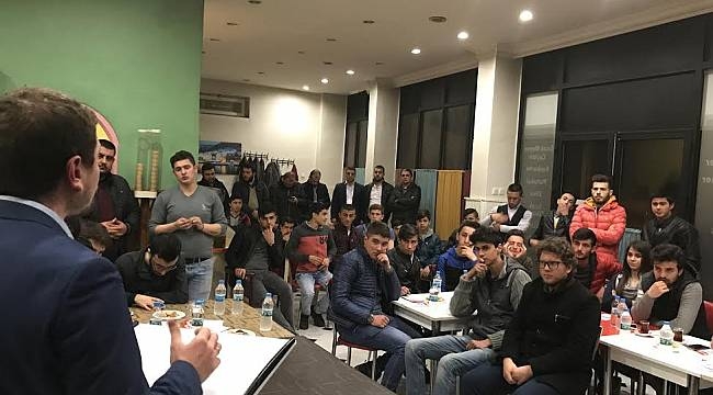 Sakarya İl Gençlik Kolları Başkanı Yusuf Demir, “Bugün daha çok sözü siz gençlere bırakacağız. Genelde gençler bir büyük edasıyla, dayatmacı, tepeden inme, söz ve nasihat dinleyici pozisyona sokuluyor. Biz bunu tamamen değiştiriyoruz. Bu kürsü gençlerin kürsüsüdür. Kafanıza takılan bütün sorulara burada cevap bulabileceksiniz.” şeklinde konuştu. Genç Kürsüde Soru-Cevap;
