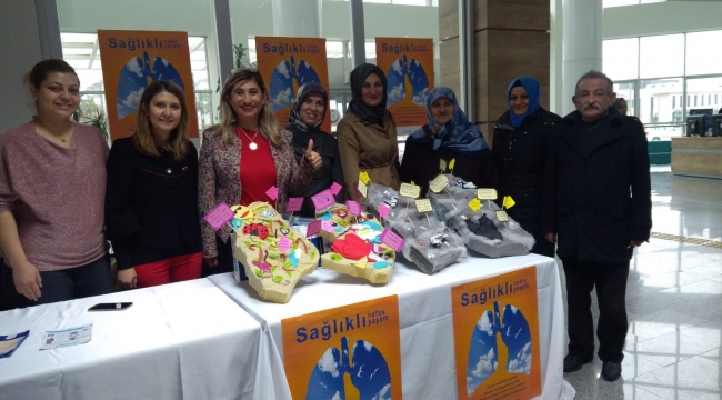 Serdivan İlçe Sağlık Müdürlüğü tarafından gerçekleştiren KOAH Günü etkinliklerinde süngerden yapılmış temiz ve kirli akciğer maketleri ilgi gördü.