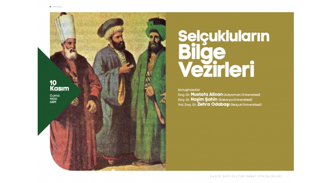 Büyükşehir Kasım Kültür Sanat Etkinlikleri kapsamında “Selçukluların Bilge Vezirleri” konulu panel düzenlenecek. Program 10 Kasım Cuma günü saat 19.00’da AKM’de gerçekleştirilecek.