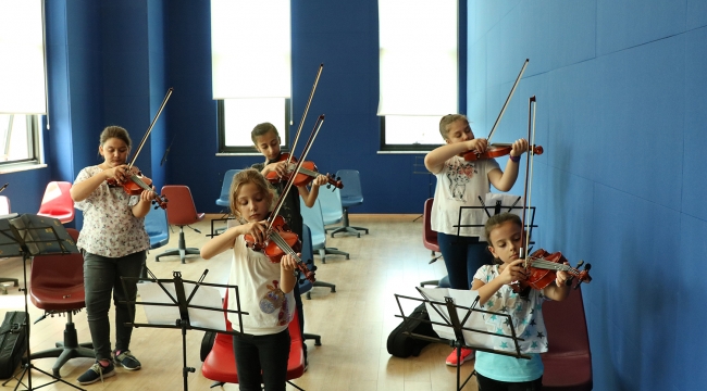 Sakarya Büyükşehir Belediyesi akyazı Sosyal Gelişim Merkezi’nde yaz kursları 20 farklı branşta minik öğrencilere hizmet sunuyor. Bin 201 öğrencinin buluştuğu yaz kurslarında öğrenciler katıldığı derslerle yeni bilgiler öğreniyor, yeteneklerini keşfediyor. Arkadaşlarıyla keyifli saatler geçiren minik öğrenciler, yaz tatilini faydalı bir şekilde geçiriypr. Kardeşlik havasıAile ve Çocuk Hizmetleri Şube Müdürü Murat Kıroğlu, “Akyazı Sosyal Gelişim Merkezimizde 20 farklı branşta eğitimlerimiz tüm hızıyla devam ediyor. Kayıtlı bin 201 öğrencimiz, SGM’de katıldıkları branşlarda öğrenirken eğleniyor, eğlenirken de yeni arkadaşlıklar kurabiliyorlar. Öğrencilerimizin SGM’lerimizde oluşan kardeşlik havası içerisinde yaz aylarını daha verimli, daha sosyal ve daha güzel bir şekilde geçirmeleri için çalışmalarımıza devam edeceğiz” sözlerine yer verdi. Devam eden yaz kursları kapsamında Akyazı SGM'yi ziyaret ederek dersleri yerinde inceleme fırsatı bulduk ve eğitmenler ile röportajlar gerçekleştirdik. Ömürleri boyunca devam etmelilerKeman Sınıfı Eğitmeni Orçun Üretmen, “Sınıfımızda çok yetenekli ellere sahibiz. Öğrencilerle eğitimlere ilk olarak Batı keman eserleriyle başladık. İlk eserimiz Beethoven’in ‘9. Senfoni’si oldu. Keman’ın içindeki perdeleri tanıma aşamasında olduğumuz için öğrencilerimiz ‘Sürmeli’ isimli parçayla devam ettiler, hemen arkasından ‘Fabrika Kızı’ isimli eseri çalmaya başladık. Şu an öğrenciler ‘Buruk Acı’ isimli eserle çalışmalara devam ediyor. Keman gerçekten zor bir enstrüman, bunun için çok çalışmalılar. İnşallah ömürleri boyunca bu enstrümanla devam ederler” dedi. Özgün tasarımlarOyuncak Atölyesi öğretmeni Hatice Nur Angın, “SGM’de iki yıldır oyuncak atölyesinde çocuklarla birlikte keyifli tasarımlar yapıyoruz. Öğrencilerimle eğlenerek ders işliyoruz. Onlarla birlikte artık materyallerden şekiller yapıyorum ve onların el becerilerinin gelişmesine yardımcı oluyorum. Atölyemizde öğrenciler seramik çalışması, dolgu çalışması ve boyama çalışması ile renkleri doğru kullanabiliyorlar. Oyuncak atölyemizde temel amacımız; öğrencilerin özgün tasarımlar üretmelerine olanak sağlamaktır” dedi.