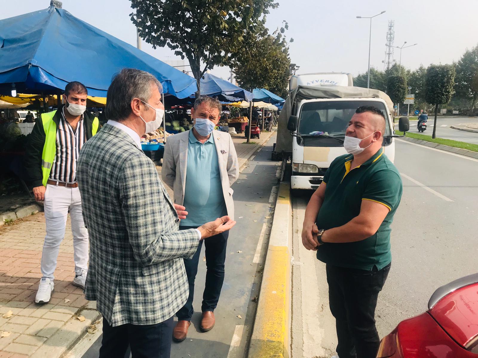 Serdivan Belediye Başkanı Yusuf Alemdar İstiklal Mahalle Muhtarı Mustafa Gül ile birlikte Çark Sanayi ve Salı Pazarı esnafını ziyaret etti.