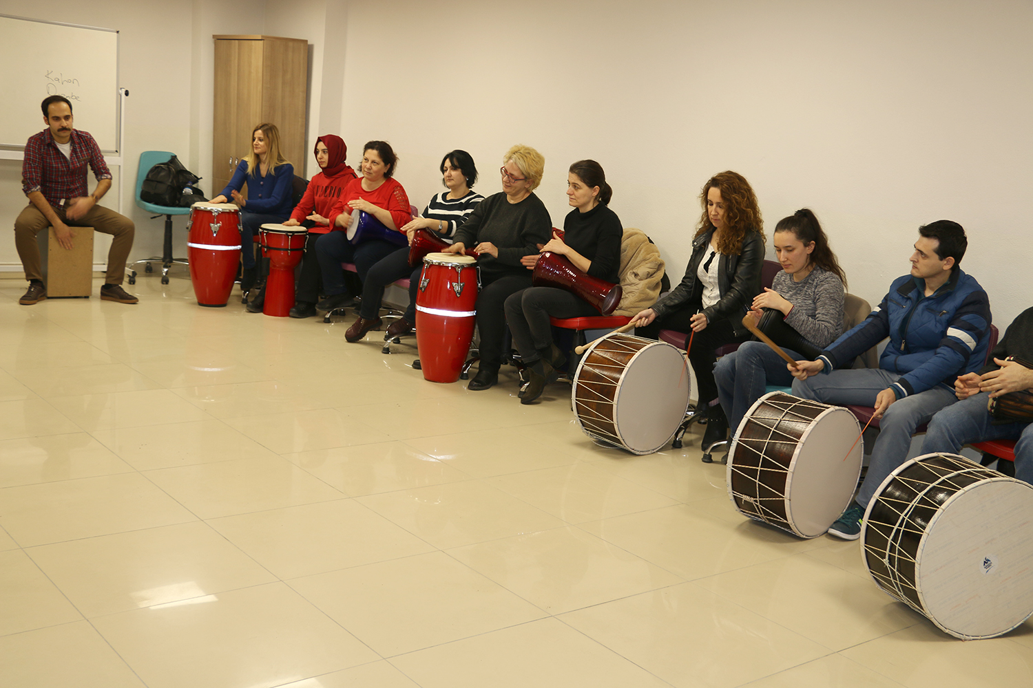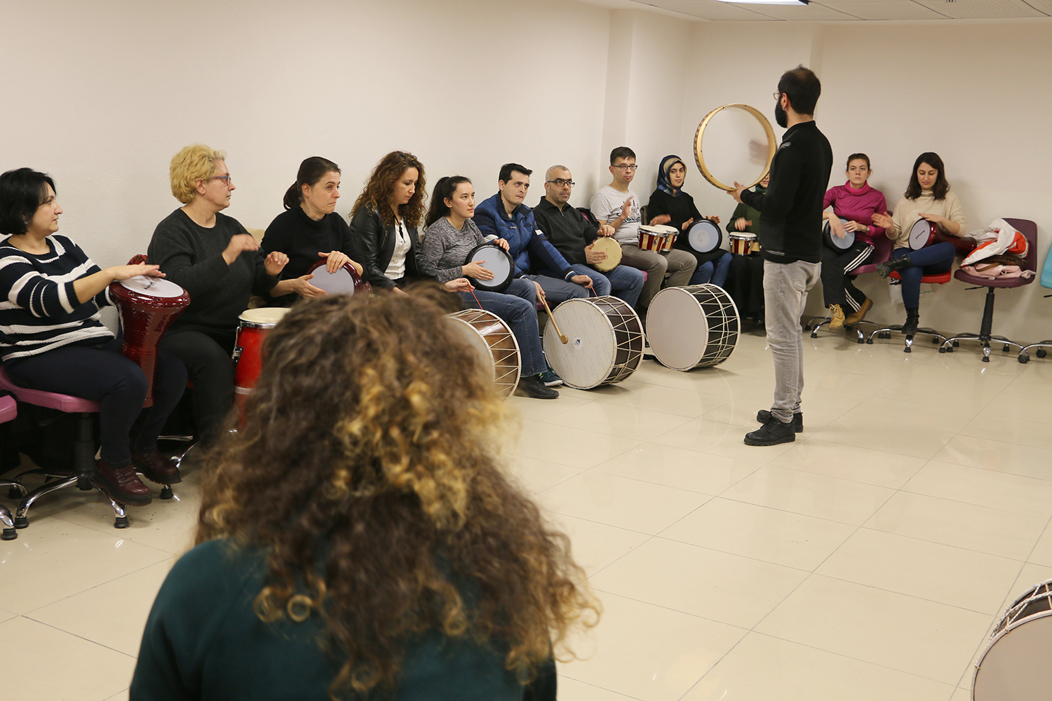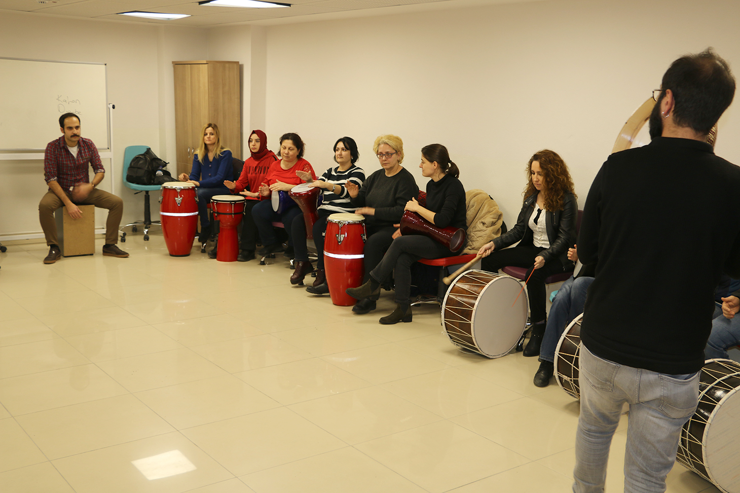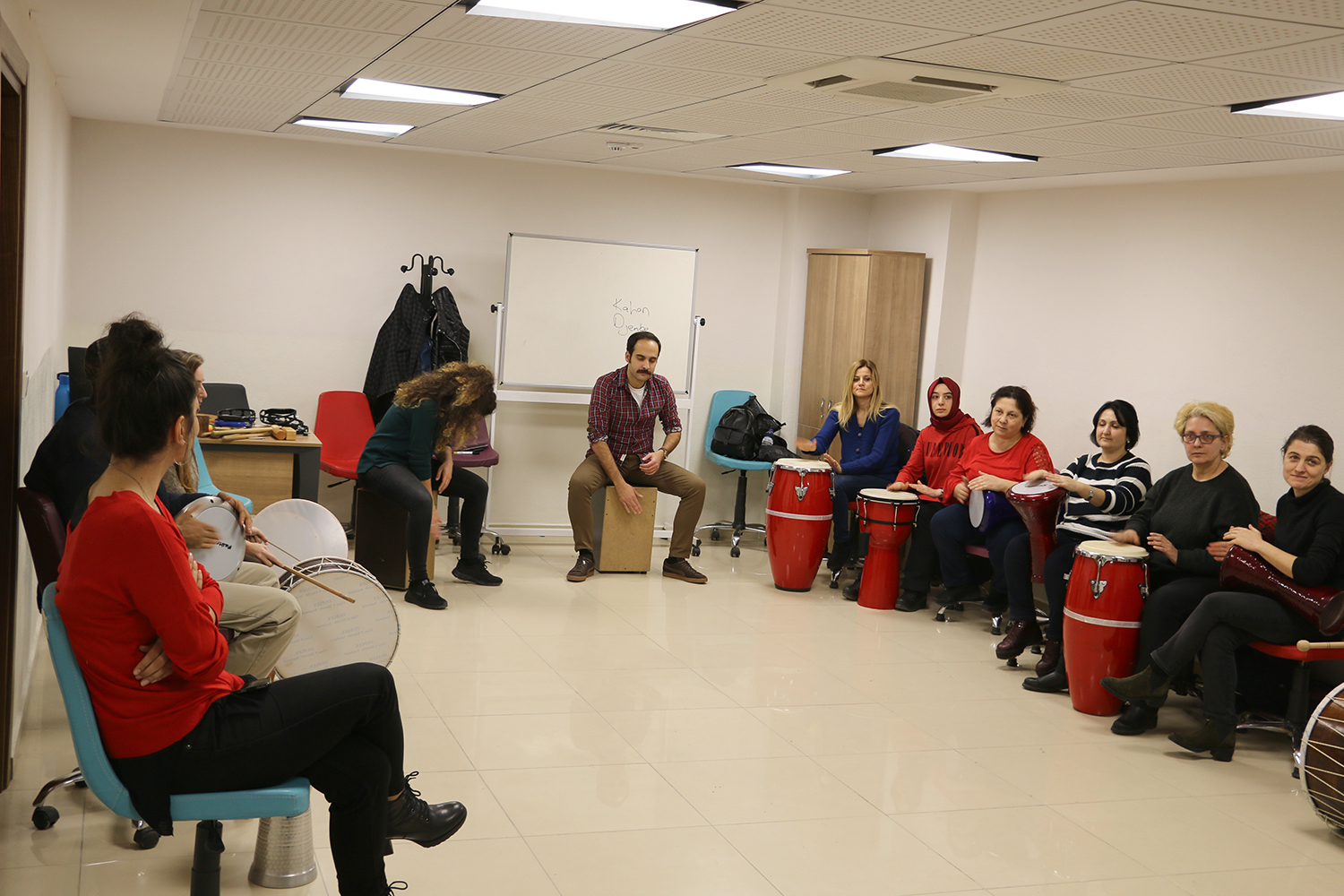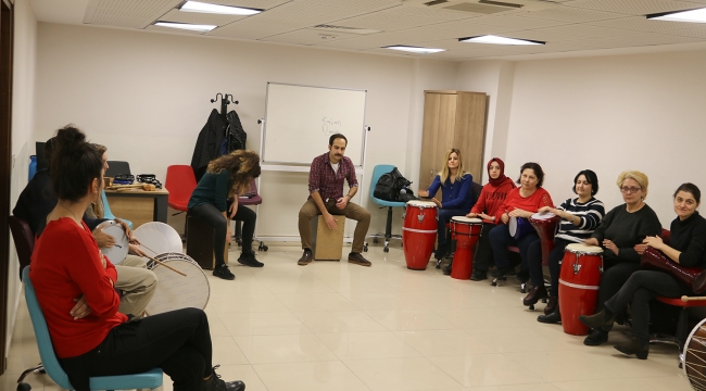Sosyal Gelişim Merkezi Psikologlarından Miray Şahin, “Çalışma hayatının ve yaşamın gerekliliklerinin neden olduğu olumsuz durumlara rahatlatıcı teknikler ve etkinlikler sunan ‘Pozitif Yaşam ve Ritim Atölyemizde eğitimler başladı. Ritim Atölyesi ile amacımız profesyonel anlamda müzik aleti çalmayı öğrenmekten ziyade gün içerisinde maruz kaldığımız stres oluşturan durumlara karşı terapi sağlamaktır” dedi.