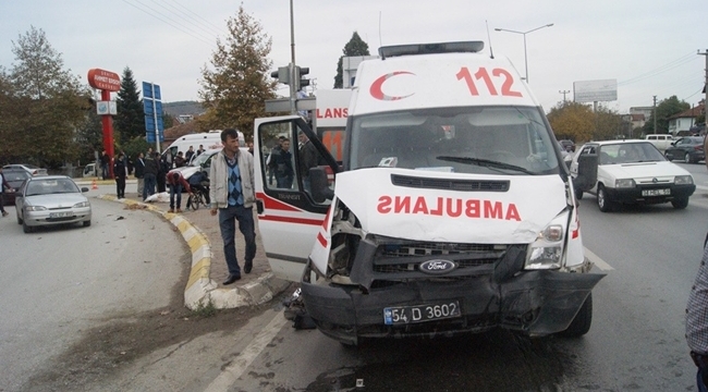 Edinilen bilgilere göre, öğlen 13.45 sularında hendek ilçesi Bayraktepe Mahallesinden düşme vakası geçiren 52 yaşındaki Ömer K. ve beraberinde Hamit K. adlı kişiyi alarak Hendek Devlet Hastanesine hareket eden Özcan D. idaresindeki 54 D 3602 plakalı 112 ambulansı, D-100 Karayolu Şehit Ali Gaffar Okkan kavşağında Ahmet Z.S. idaresindeki 54 KH 868 plakalı otomobille çarpıştı. Çarpmanın etkisiyle otomobil kaldırıma çıkarak durabildi.