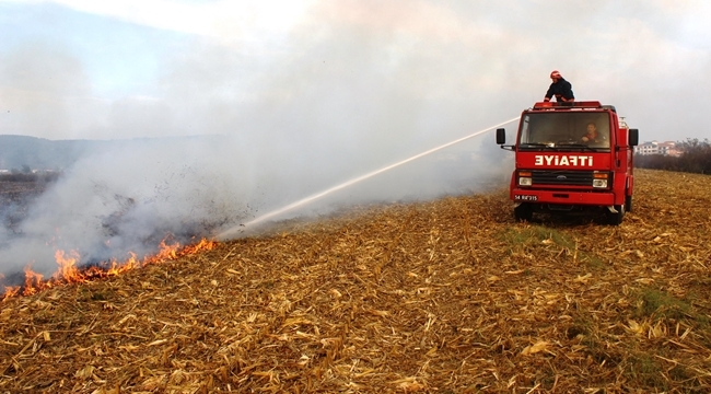 Sakarya'da itfaiye ekipleri, mısır hasadının başlamasıyla birlikte yasak olmasına rağmen her gün farklı bölgelerde yakılan yüzlerce anız yangınına müdahale ediyor.