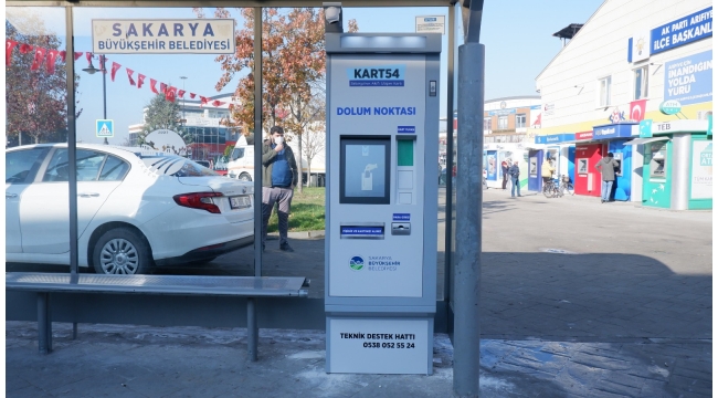 Büyükşehir Belediyesi toplu taşımada hızlı, ucuz ve sağlıklı ulaşım imkanı sağlayan Kart54 kiosk istasyonlarına bir yenisini daha ekledi. Temassız ödemelere imkan sağlayan ve kart dolum, tam kart satışı ile manyetik bilet gibi hizmetler sunan Kart54 kiosk makinası Arifiye Meydanı’ndaki yerini aldı.
