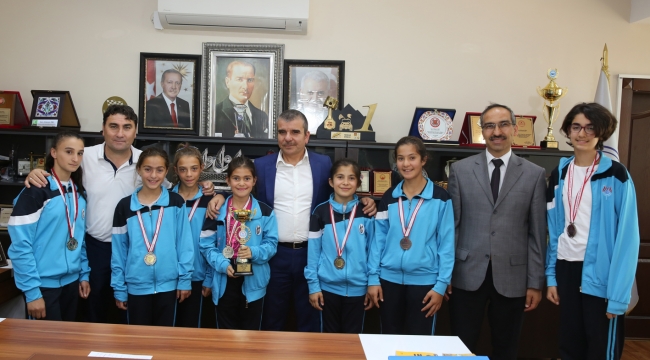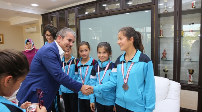 Taşkısığı Ortaokulu Müdürü Hilmi Çil ve atletizm Antrenörü Faruk Erdoğan Öztürk ile Mazlum Ünver, Atletizmde üçüncü olan Adapazarı Belediyesi Atletizm Kulübü sporcuları Ceren Sarı, Melike Memişoğlu, Ayşegül Halil, Merve Meriç Çırpar, Rabia Yakupoğlu, Yağmur Torlak, Huri Melek Başaran, Esra Çiçek, Duygu Yakupoğlu vr Sevil Derya Yakupoğlu ile Başkan Yardımcısı Rıdvan Özüm’ü ziyaret ettiler. Ziyaretten duyduğu Memnuniyeti ifade eden Başkan Yardımcısı Özüm, çocukların küçük yaşlarda sporla ilgilenmesinin sosyal gelişimlerine katkı sağlayacağını belirterek, “Almış oldukları bu tür başarılar özgüvenlerini arttırarak hedeflerini yükseltecektir. Biz de Adapazarı Belediyesi olarak her zaman spora elimizden gelen desteği sağlamaya çalışıyoruz.”dedi.