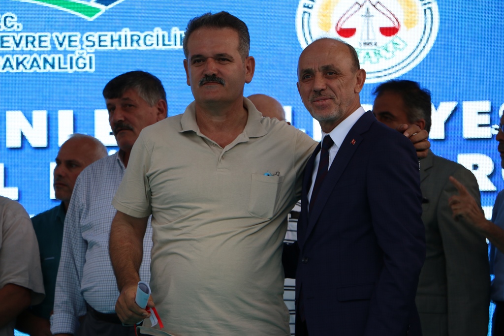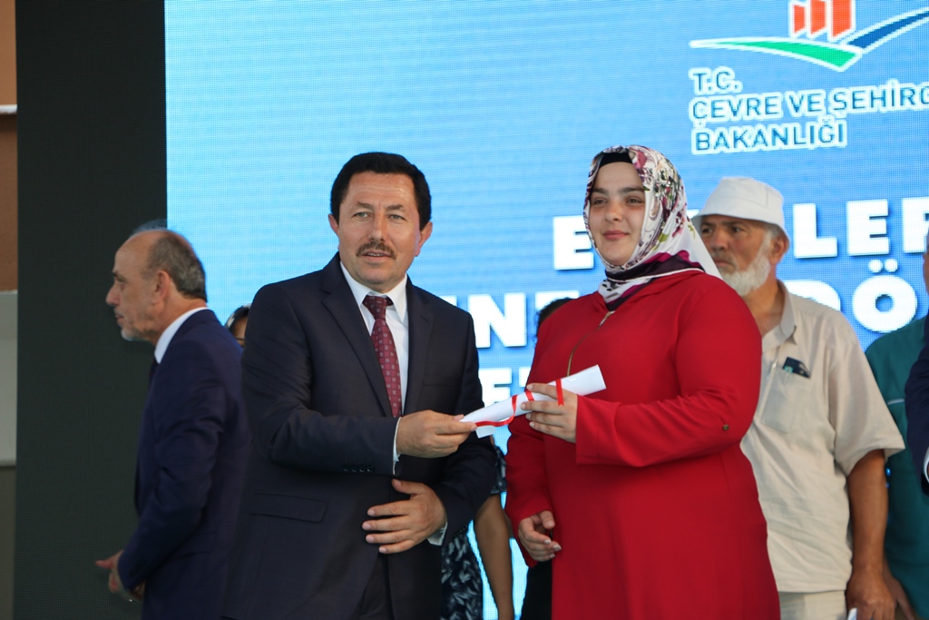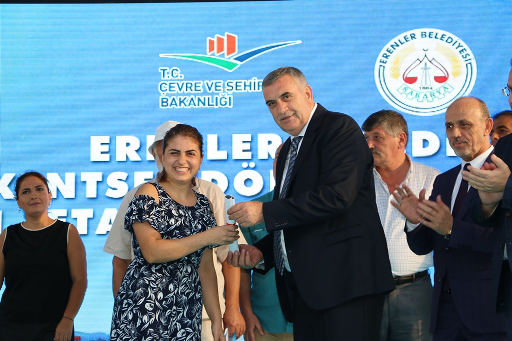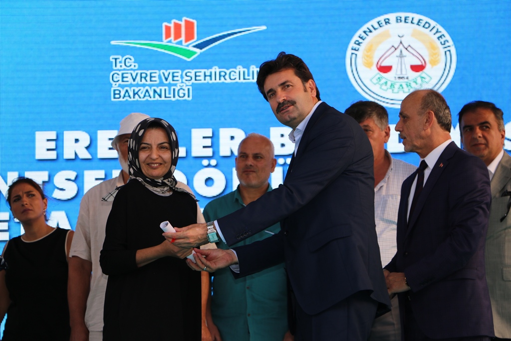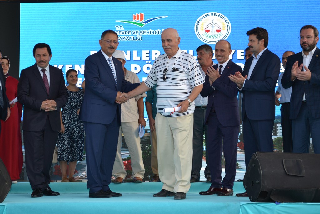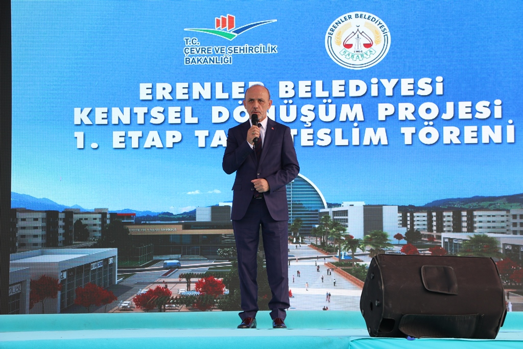 Erenler Belediyesi Kentsel Dönüşüm Projesi 1. Etap Tapu Dağıtım Töreni yapıldı. Törende yaptığı konuşmada projeyi çok beğendiğine vurgu yapan Bakan Özhaseki depreme dayanıklı modern yapıların çoğalması için dönüşüme destek vermeye devam edeceklerini söyledi