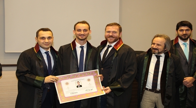 Erenler Belediye Başkanı Cavit Öztürk’ün oğlu Cihat Öztürk yemin töreninin ardından Avukatlık sertifikasını alarak cübbe giydi.