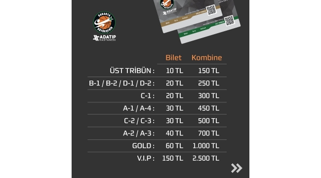 Adatıp sponsorluğunda Tahincioğlu basketbol Süper Ligi ve FİBA Şampiyonlar Ligi’nde mücadele edecek olan Büyükşehir Basketbol’da 2018-2019 sezonu kombine kartları yenileme ve satış işlemleri başlıyor. Kombine kart işlemlerinde öncelikli olarak 2017- 2018 sezonu kombine kartı sahiplerine mevcut kombinelerini yenileme hakkı tanınacak. 3 Eylül Pazartesi ile 6 Eylül Perşembe arası gerçekleştirilecek kombine yenileme işlemlerinde 8 Eylül Cumartesi’ye kadar ise ek talepler değerlendirilecek. Yeni sezon kombine kart satışlarına ise 10 Eylül Pazartesi günü başlanacak olup 4 Ekim Perşembe gününe kadar basketbol severler sakarya Spor Salonu’ndan temin edebilecek. Play-Off’lar da geçerliKombine kartları ile ilgili kulüpten yapılan açıklamada, “2018-2019 kombine kartları ile taraftarlarımız bu sezon en az 15 lig ve 7 Avrupa Kupası olmak üzere toplam 22 maç seyredebilecek. Takımımızın Tahincioğlu Basketbol Süper Ligi’nde Play-Off oynaması ve Avrupa Kupalarında tur atlaması durumunda da yeni maçlar için aynı kartlar geçerli olacaktır” denildi. 2018-2019 sezonu bilet fiyatları şu şekilde;