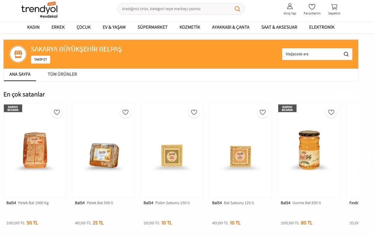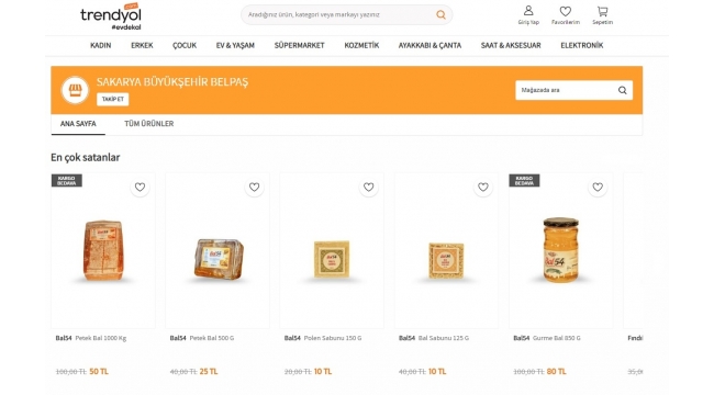 Sakarya büyükşehir belediyesi iştiraklerinden BELPAŞ marifetiyle vatandaşlarla buluşturulan yöresel ürünlerin satışı alışveriş sitesi Trendyol üzerinden de yapılmaya başlandı. Daha önce mobil uygulama aracılığıyla da dijital platformlardaki yerini alan BELPAŞ, ülkenin her noktasına şehrin markasını ulaştıracak. 9-16 Aralık tarihleri boyunca ise Trendyol üzerinden verilecek siparişlerde 150 TL ve üzeri alışverişlerde 15 TL’lik indirim de uygulanacak. Bal54 ve Fındık54 markaları Trendyol’daBELPAŞ’tan konuyla ilgili yapılan açıklamada, “Ülkemizin çok sık kullanılan alışveriş sitesi Trendyol üzerinden şehrimizin marka ürünlerini vatandaşlarımızla buluşturacağız. Polen, Propolis ve Bal sabunun yanı sıra Kestane, Yayla, Çiçek, Lavanta, Ihlamur, Çam ve Gurme Bal ile Petek Bal ürünlerimiz arasında yer alıyor. Ayrıca fındık ezmesi ve kavrulmuş fındık da platform üzerinden satışı gerçekleştirilen diğer ürünlerimiz. Şehrimize özgü diğer ürünler de Trendyol üzerinden yine vatandaşlarla buluşmaya devam edecek. Bal54 ve Fındık54 markalarını ülkemizin tamamına ulaştıracak olmanın heyecanını yaşıyor, ürünlerimizi tercih eden tüm vatandaşlarımıza şimdiden teşekkür ediyoruz. ” denildi.