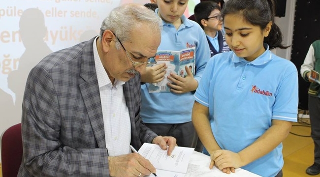 Öğretmen Canlı KitaptırAdabilim Okulları konferans salonunda gerçekleştirilen söyleşi ilkokul ve ortaokul öğrencileri ile iki ayrı grup halinde gerçekleştirildi. Söyleşi boyunca öğrencilerle tecrübelerini paylaşan Bestami Yazgan, öğrenci için iyi bir öğretmenin hayatta sahip olacağı en büyük şans olduğunu belirterek “ Öğretmen canlı kitaptır. Tembellik ve kalitesizlikten başka önümüzde engel yok. İmkan varken onları güzelce dinleyip faydalanalım. Lokantada yemek tabakta, okulda bilgi kitapla servis edilir. Bilgiye sahip olan hükümdardan daha çok saygı görür” dedi.Şiirlerini EzberledilerSöyleşi sırasında öğrenciler Bestami Yazgan’a ait olan Anne Sen Melek misin? Mert Babam ve Canım Öğretmenim şiirlerini birlikte okudular. Ayrıca öğrenciler yazara sürpriz de yaparak ezberlemiş oldukları şiirleri sahneye çıkarak seslendirdiler. Program sonunda ise hep birlikte hatıra fotoğrafı çektirerek kitaplarını imzalattılar.