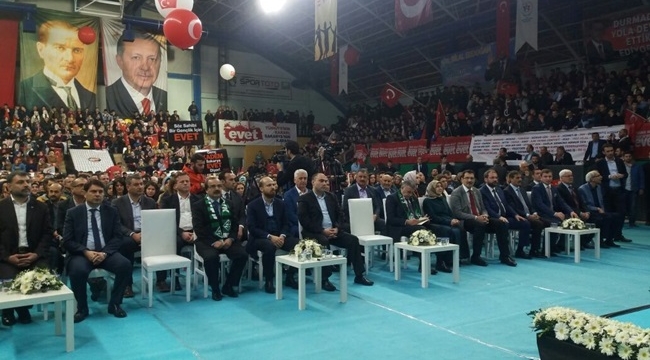 TÜGVA Yüksek İstişare Kurulu Üyesi Bilal Erdoğan yaptığı konuşmasında, “16 Nisan hakikaten Türkiye için önemli bir dönüm noktası. Öyle bir dönüm noktası ki 1950 yılında merhum Menderes’in seçildiği, 1983’te merhum Özal’ın seçildiği ve 2002’te Recep Tayyip Erdoğan’ın seçildiği seçimlerden daha önemli bir halk oylamasına gidiyoruz. Şu üç seçimi bir hatırlayalım, bizim eğitimimizde çok fazla yakın tarih yok. Hatırlatmamız, hatırlamamız çok önemli 1950 seçimlerinde bu millet ezanlarının yasaklandığı bir ortamda sandık başına gitti, cenaze namazı kılacak bir hoca bulamadığı ortamda gitti sandık başına, camilerin ahıra çevrildiği, satıldığı yıkıldığı 10 binlerce camiden bahsediyorum böyle bir dönemde sandık başına gittik” dedi.