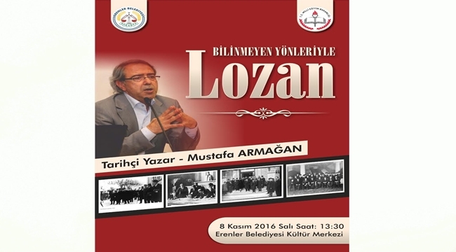 Erenler Belediyesi tarafından düzenlenen etkinlikte araştırmacı-yazar Mustafa Armağan, “Lozan’ın Bilinmeyen Yönleri” konulu bir konferans verecek.
