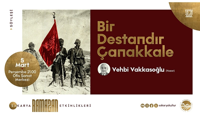 Sakarya Büyükşehir Belediyesi Ramazan Kültür Sanat Takvimi, milli ve manevi değerlerin ele alınacağı anlamlı bir söyleşi programıyla sanatseverleri ağırlayacak. “Bir Destandır Çanakkale” başlıklı programda, Çanakkale ruhu ve destansı mücadele farklı yönleriyle ele alınacak.Destanın bilinmeyen yönleri konuşulacakSöyleşi programı 5 Mart Perşembe günü Ofis Sanat Merkezi’nde gerçekleştirilecek. Yazar Vehbi Vakkasoğlu’nun konuşmacı olarak katılacağı programda, Çanakkale Destanı’nın bilinmeyen yönleri, kahramanlık hikâyeleri ve milletimizin inançla yoğrulmuş mücadelesi dinleyicilerle paylaşılacak. Program saat 21.00’da başlayacak.Kültür ve Sosyal İşler Dairesi Başkanlığı yaptığı açıklamada, Ramazan Kültür Sanat Takvimi kapsamında düzenlenen söyleşi programına tüm kültür sanat dostlarını davet etti.