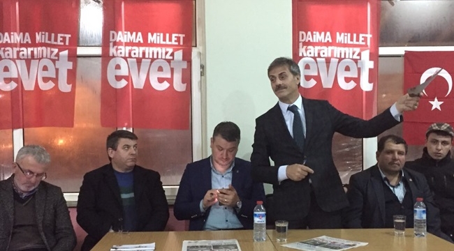 Yıllardır siyaseti takip etmiş, siyasete yön vermiş, önderlik etmiş büyüklerle aynı çatı altında olmaktan ve aynı amaca hizmet etmekten dolayı gurur duyduğunu belirten Başkan Alemdar, referandum sonucunun evet olması halinde tüm dünyayı daha güçlü bir Türkiye’nin beklediğini belirterek süreç ile ilgili değerlendirmelerde bulundu.Mevcut sistemdeki eksiklikler ile iki başlı yönetim modelinin bu güne kadarki aksaklıklarını tarihten örneklerle açıklayan Alemdar, “Milletin verdiği kararı beğenmeyen birileri iki başlılığın yaratmış olduğu zafiyetten faydalanarak bir anda düğmeye bastılar ve hemen darbe yaptılar. Bu ülkenin başbakanını milletin gözünün içine baka baka idam ettiler.” dedi.Ne İtleri Ne De Atları Bizi KorkuturMilletin egemenlik gücünü daha da kuvvetlendirmek için Cumhurbaşkanlığı sistemine ihtiyaç duyulduğunu belirten Alemdar, Avrupa Birliği’nin bu süreçteki tutumuna da değindi. Alemdar, “Bir sistem değişikliğine gidiyoruz. Buna karar verecek olan milletimiz ama ne hikmetse ses Avrupa’dan çıkıyor. Avrupa ayağa kalkıyor. Daha dün PKK’nın, DHKPC’nin her türlü propagandasına müsaade eden, FETÖ’cülere kucak açan Almanya bu ülkenin bakanına neden müsaade etmiyor. İfade özgürlüğü temeli üzerine inşa edilen Avrupa, çifte standart diplomasi davranışlarıyla çökmüştür. Bu ülkede birlik ve beraberlik olduğu müddetçe onların ne itleri ne de atları bizi korkutur” dedi.Aziz Milletimiz Üzerine Düşen Görevi Yerine GetirecektirCumhurbaşkanlığı sisteminin Türkiye’ye yeni ufuklar açacağını ve büyük faydalar sağlayacağını belirten AK Parti Serdivan İlçe Başkanı Osman Çelik, Milliyetçi Hareket Partisi’nin bu süreçte vermiş olduğu destekten dolayı AK Parti adına teşekkür etti.Türkiye’deki sisteminin 15 Temmuz’da tıkandığını hep birlikte gördüklerini belirten Çelik, hain darbe girişiminden sonra bu sistemin bir an önce değişmesi için görüş birliğine varıldığını ve ortak mutabakat çerçevesinde anayasa değişikliğinin milletin kararına sunulduğunu ifade ederek “Bütün engellemelere rağmen milletvekillerimiz görevlerini yerine getirdi. Şimdi milletvekillerimiz dedi ki yeter karar da söz de milletindir. İnşaallah 16 Nisan’da bu aziz millet üzerine düşen görevi yerine getirecektir.” dedi.