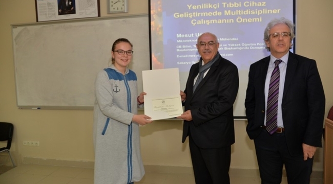 Sakarya Üniversitesi Sağlıkta Bilişim, Teknoloji ve İnovasyon Araştırmaları (BilTekİn) Öğrenci Topluluğu tarafından düzenlenen “Tıpta İnovasyon ve Biyomedikal Cihaz Geliştirmede Multidisipliner Yaklaşım” isimli etkinlik, Tıp Fakültesi Korucuk Morfoloji Binası Dönem 3 Amfisi’nde gerçekleştirildi. Danışmanlığını Sakarya Üniversitesi Tıp Fakültesi öğretim üyesi Prof. Dr. Mustafa Altındiş’in etkinliğe, Cumhurbaşkanlığı Bilim, Teknoloji, Sanayi ve Yüksek Öğretim Politikaları Başdanışmanlığı ve Tübitak Başkanlığı Danışmanı Mesut Uğur konuşmacı olarak katıldı. Ülkemizde sağlık hizmet sunumunda, tanı, tedavi ve tarama amaçlı kullanılan tıbbi cihazların yaklaşık yüzde 85’i, sarf malzemelerin de çok büyük bir kısmının yurt dışından temin edildiği belirten Prof. Dr. Mustafa Altındiş, “Türkiye tıbbi cihaz pazarının yaklaşık 3 milyar dolar olduğu dikkate alınacak olursa cari açığın önemli bir nedeninin sağlık hizmetleri gereçleri olduğu anlaşılacaktır. Tıbbi cihaz ve ilaç geliştirme fikrini genç yaşlarda tıp öğrencilere aktarmayı amaçlamalıyız” dedi.Tıbbi cihaz konusundaki yeni gelişmelerin ve Türkiye’nin dünya pazarındaki payının tartışıldığı etkinlikte, genç araştırmacıların bu alana daha fazla ilgi göstermeleri ve bunların getireceği yararlar konusu ele alındı. Etkinlikte, sağlık alanındaki akademisyenlerin ve doktorların, mühendislik bilimleri ile multidisipliner yaklaşımlarla yeni projeler üreterek çalışmalar yapmalarının ülkemizde bu alandaki gelişmeler açısından gerekli ve önemli olduğu vurgusu yapıldı.