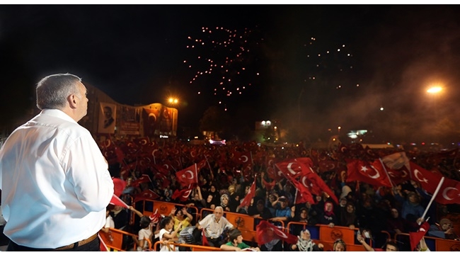 Sakarya, 15 Temmuz darbe girişimin ardından demokrasi nöbetine devam ediyor. Bu kapsamda kalkışmanın 12’inci gününde de Demokrasi Meydanı’ndaki toplanan on binlerce vatandaş darbeye karşı sloganlar attı. Milli irade ve seçilmiş hükümete karşı yapılan hain saldırı meydanda toplanan on binler tarafından lanetlendi. Programda Başkan Toçoğlu’nun yanı sıra, sakarya Valisi Hüseyin Avni Coş, AK Parti İl Başkanı Fevzi Kılıç, belediye başkanları, ilçe başkanları, STK temsilcileri ve gazeteciler de yer aldı. Ümmet Coğrafyasını Düşündük15 Temmuz gecesi Valilik önündeki protesto gösterilerinde yaralanan Gazi Ali Kasımoğlu, “Onlar sandılarki darbe yaptıklarında bu millet sokaklara çıkmayacak. Tankları caddelerden yürüttüklerinde, milletimizin karşılarına dikileceğini hesap etmediler. Onlar mermi attıklarında göğsümüzü siper edeceğimizi düşünemediler. Hepinizden Allah razı olsun” derken; Gazi Aslı Nur Ayan, “Darbe girişimini İstanbul’a seyahat eden bir yakınımızdan öğrendik. İlk etapta bir anlam veremedik. Televizyon kanallarını taradık. TRT’de olanların ardından sadece ülkemiz için değil ümmet coğrafyasını düşündük. Cumhurbaşkanımızın da canlı yayına çıkmasıyla birlikte kendimizi dışarılara attık. Biz şehadete yürüdük. Rabbim bize gaziliği nasip etti” diye konuştu. Gazi Mustafa Onur Ayan ise; “Bu zorlu süreçte yanımızda olan herkese şükranlarımı sunuyorum. Sizlerde hep oradaydınız. Sizlerden tek farkım sadece bedenime bir kurşun isabet etmesidir” dedi. Milletimiz Tarihe GeçecektirArifiye Belediye Başkanı İsmail Karakullukçu, “FETÖ’cü darbe girişiminin 12’inci gününde de demokrasi meydanını vatanımız, milletimiz, bayrağımız ve gelecek nesillerimiz için ilk günkü aşkla doldurdunuz. Bu ülke güçlenmeye ve gelişmeye başladığında işte o zaman korktular. Türkiye’nin Dünya’nın ilk 10 ekonomisi arasına gireceğinden korktular. Darbe girişimini çok şükür engelledik. Demokrasi ve milli iradeye karşı tankların karşısında göğsünü siper eden milletimizin bu duruşu tarihe geçecektir” diye konuştu. Yoğunluğumuz Muhafaza EdiliyorBaşkan Zeki Toçoğlu, “12 gündür yılmadan, yorulmadan, yüksünmeden direnişimizi sürdürüyoruz. Her zaman ifade ettiğimiz gibi Cumhurbaşkanımız ‘Evlerinize dönün’ talimatını verene kadar da bu meydanlardayız. Sizler böyle sabırlı ve metanetli oldukça, siz seçtiklerinizin arkasında durdukça darbecilere gereken dersi birlikte vereceğiz. İşte Sakayra bir demokratik direnişin nasıl gürültüsüz, zararsız yapılabileceğini tüm dünyaya gösterdi. Hamdolsun 15 Temmuz akşamından itibaren meydanımız yoğunluğunu muhafaza ediyor. Kırmadan, dökmeden karıncaya dahi zarar vermeden darbenin karşısında duruşumuzu devam ettireceğiz” ifadelerini kullandı. Memleketimizi Teslim EtmeyeceğizBaşkan Toçoğlu, “Gün geçtikçe nasıl bir badire atlattığımızı daha iyi anlıyoruz. Vakit buldukça televizyonlarda bu hainlerin neler yapmayı planladıklarını daha iyi görmekteyiz. Bu yüzden daha tehlike geçmedi. Bunlar fırsat bulduğunda kendi polislerini, askerlerini ve vatandaşlarını kurşunladılar. Bunlarda Allah korkusu yok. Bu yüzden bu mücadelemiz devam edecek. Memleketimizi bu kökü Pensilvanya’da olan hainlere teslim etmeyeceğiz. Allah sizlerden razı olsun” diye konuştu. Meydanlar KonuşuyorAK Parti İl Başkanı Fevzi Kılıç, “15 Temmuz gecesi gazi olan arkadaşlarımızdan bazıları bu akşam buradalar. Kendilerini hastaneye ziyarete gittiğimizde onlara moral vereceğimizi düşündük ancak onlar bizlere moral verdi. Rabbim tez zamanda şifalarını versin. Allah onlardan razı olsun. Bugün herkes susacak meydanlar konuşacak. Hamdolsun artık Türkiye’nin her yerinde meydanlar konuşuyor. Hem ülkemizde hem de dünyada darbecilere karşı büyük tepkiler oluyor. Allah bu kutlu mücadelede devletimize sahip çıkan herkesten Allah razı olsun” ifadelerini kullandı. Millet Göğsünü Siper EttiVali Hüseyin Avni Coş, “Demokrasimizi korumak için gösterdiğiniz mücadeleden dolayı hepinizi kutluyorum. Hepiniz basiret, feraset ve cesaret sahibisiniz. Bunu 15 Temmuz gecesinde de gösterdiniz. Valiliğimizi işgal eden sanki PKK kampını işgal ediyormuş gibi hareket eden bu gözü dönmüş asker kıyafetli hainlerin Valiliğimizden tahliye edilmesi ve adalete tevdi edilmesinde sizler göğsünüzü siper ettiniz. Hepinize ayrı ayrı teşekkür ediyorum” dedi.