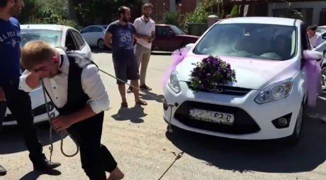 Arkadaşları tarafından araca bindirilmeyen damat, bir süre gelin arabasını halatla çekerek Tuğçe ile bir ömür mutluluğa yelken açmayı ne kadar istediğini tüm davetlilere göstermiş oldu. Arkadaşlarının türlü şakalarına maruz kalan Damat Furkan Abdullah, daha sonrasında dünya evine girerek mutluluğa yelken açtı.