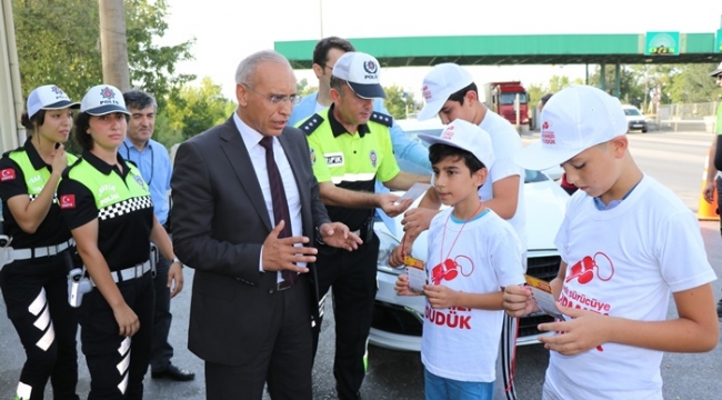 Kurban Bayramı'nda meydana gelebilecek trafik kazalarının önlenmesi amacıyla İçişleri Bakanı Süleyman Soylu’nun talimatıyla tüm illerde başlatılan 'Bu bayram ben de trafik polisiyim, hatalı sürücüye kırmızı düdük’ projesi Sakarya’da uygulandı. İl Emniyet Müdürü Fatih Kaya, Arifiye gişelerinde trafik polisleri ile birlikte uygulamayı gerçekleştirdi. uygulama kapsamında içinde çocuklu ailelerin bulunduğu araçlar durduruldu. Ekipler tarafından araçlarda bulunan çocuklara proje hakkında bilgi verilip, kırmızı düdük, tişört ve şapka hediye edildi. Emniyet Müdürü Kaya çocuklardan, içinde bulundukları otomobilin sürücüsünün kurallara uymaması halinde kırmızı düdüğü çalması istedi.