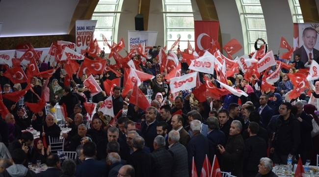 Çalışma ve Sosyal Güvenlik Bakanı Dr. Mehmet Müezzinoğlu, Daima Millet Kararımız Evet programı kapsamında AK Kadrolar ile Sakarya’da bir araya geldi. AK Parti Serdivan İlçe Başkanlığının organize ettiği programa Bakan Müezzinoğlu’nun yanı sıra AK Parti Genel Başkan Yardımcısı Şaban Dişli, sakarya Valisi Hüseyin Avni Coş, AK Parti Sakarya İl Başkanı Fevzi Kılıç, Sakarya Büyükşehir Belediye Başkanı Zeki Toçoğlu, AK Parti Sakarya Milletvekilleri Prof. Dr. Mustafa İsen ve Recep Uncuoğlu, Serdivan Belediye Başkanı Yusuf Alemdar, Serdivan İlçe Başkanı Osman Çelik, 25. Dönem Milletvekili Ali İnci, Sivil Toplum Kuruluşu Temsilcileri ve çok sayıda Balkan göçmeni vatandaş katıldı. “Sandıktan Evet Çıkacak”Programın açılış konuşmasını gerçekleştiren AK Parti Serdivan İlçe Başkanı Osman Çelik, “Serdivanlılar bizi hiç bir zaman yalnız bırakmadı. 16 Nisan'da da Serdivanımız gereken desteği verecek ve evet oyları sandıktan çıkacaktır diye düşünüyorum.” dedi. Serdivan Belediye Başkanı Yusuf Alemdar, yaptığı konuşmada, “İlçemde yaşayan hemşerilerimle ne kadar gurur duysam azdır. Serdivan'dan alacağımız yüksek oy ile Cumhurbaşkanımıza ve irademize sahip çıktığımızı bir kez daha göstermiş olacağız.” ifadelerini kullandı. “Balkanlarda Söz Sahibi Olacağız”Balkanlardan gelip Sakarya’da yaşayan vatandaşlara seslenen Büyükşehir Belediye Başkanı Zeki Toçoğlu, “Balkanlardan kardeşlik coğrafyası Sakarya’sına gelerek burada bir hayat kuran hemşerilerim 16 Nisan’da kazandıklarımızı bir daha asla kaybetmemek için gerekeni yapacaktır.” şeklinde konuştu. 16 Nisan’dan sonra Türkiye’nin yeniden Balkanlarda söz sahibi olacağını ifade eden Sakarya Milletvekili Mustafa İsen, “Vatandaşlarımız, 16 Nisan’da sandıktan evet çıktıktan sonra ne kadar refaha kavuşacaklarının farkında. Referandumdan evet çıkmasının sonucunda Türkiye’nin daha güçlü bir ülke haline gelmesi, bizi yeniden Balkanlarda söz sahibi yapacaktır. Bu sebep ile Balkanlardan gelen vatandaşlarımızın büyük desteğini alacağımızı düşünüyorum.” dedi. Sevgi, Emek, İnaç ve HeyecanCoşkulu kalabalığın heyecanını Cumhurbaşkanının katılacağı açılış töreninde de görmek istediğini belirten AK Parti Sakarya İl Başkanı Fevzi Kılıç, “Sakarya, 17 dilin konuşulduğu, her kültürün beraberce ve kardeşçe yaşadığı bir il. Hepimiz burada bu şehir için çalışıyoruz. Bizi biz yapan değerler sevgi, emek, inanç ve heyecandır. Sizin sevginize, emeğinize, inancınıza, ve heyecanınıza layık olmayı Allah bize nasip etsin. Bu heyecanla perşembe günü Cumhurbaşkanımızı bir kez daha bağrımıza basacağız.” diye konuştu. “Sakarya Her Kırılma Anında Omuz Verir”Halk oylaması için gece gündüz çalıştıklarının altını çizen Başkan Kılıç, “Referandum arifesindeyiz. Sakarya’nın güzel insanlarına bu konuda bir şey söylemeye gerek yok. Sakarya her kırılma anında omuz verir. Biz zaten her seçimde birinci çıktık. 16 Nisan seçimleri belki de Türkiye’nin en önemli seçimidir. İnşallah bu seçimden sonra yeni ufuklara yelken açacağız. Ben Sakarya'nın vereceği desteğe inanıyor ve güveniyorum.” ifadelerini kullandı. “Cumhurbaşkanımızın Önünde Diz Çökecekler!”Avrupa’nın ülkemize karşı uyguladığı çifte standartla ilgili konuşan Genel Başkan Yardımcısı Şaban Dişli, “Çok önemli bir süreçten geçiyoruz. Toplarıyla, tanklarıyla içeride, itleriyle, atlarıyla dışarıda dünya lideri Recep Tayyip Erdoğan'a bir saldırı var. Nasıl çıplak ellerinizle o topları tankları geri çevirdiniz; yurt dışındaki hemşerilerimiz de itlerini ve atlarını öyle korkuttular. Evet oylarını yüzde 60'ın üzerinde geçirdiğimiz zaman o itler ve atlarla peşimizden koşanlar Cumhurbaşkanımızın önünde diz çökecekler.” dedi. “Rahatsız Olmaya Devam Etsinler”Programda Balkan göçmeni Sakaryalılara seslenen Çalışma ve Sosyal Güvenlik Bakanı Mehmet Müezzinoğlu, “Sakarya’nın mert insanı vatanperverlik anlamında rabbime şükürler olsun ki Sakarya Nehri gibi her zaman bereketli ve coşkulu. Balkanlara büyük bir medeniyetin ufkunu vizyonunu getiren atalarımız uzun yıllarca güçlü bir medeniyeti dünyaya sunmuş. O medeniyetin özünde ilim ve irfan var. Hak ve adalet var. Huzur ve barış var. Bu huzuru ve barışı getirmek için güçlenmemizden rahatsız olanlar var. Rahatsız olmaya devam etsinler. Biz elimizden gelen ne varsa mücadelemizi vermeye devam edeceğiz.” şeklinde konuştu. “Artık Hiçbir şey Eskisi Gibi Olmayacak!”Bakan Müezzinoğlu konuşmasının devamında şunları söyledi; Önümüzdeki dönem bu milletin kaderiyle kimsenin oynayamayacağı bir dönemdir. Türkiye'de ve dünyada artık hiç bir şey eskisi gibi olmayacak. Bütün tuzakları çözecek bir sistem değişikliğinin arifesindeyiz. Hayır diyenler milletten, bu milletin birlik ve beraberliğinden, bu milletin büyük hedeflerinden korkanlardır. Sistem artık ipin ucunu millete veriyor. Şuan ipin ucu orduda, anayasa mahkemesinde, bir tane savcının elinde. Bir savcı çıkıyor 21 milyon oy almış ak partiye kapatma davası açabiliyor. Demokrasi bunun neresinde var? Son 15 gündür diyor ki artık millet hakemdir; günaydın beyefendi, biz 2001'den beri hep milletin hakemliğiyle geldik. Sen hep milletten korktun. Başörtüsüyle ilgili düzenlemeyi anayasa mahkemesine sen götürdün. Bu ülkenin cumhurbaşkanı başörtülü olamaz diyerek 367 garabetini sen çıkarttın. O yüzden biz milletle yürümeye devam edeceğiz.