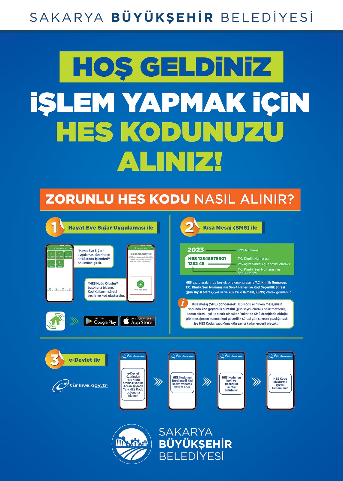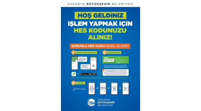 Sakarya Büyükşehir Belediyesi’ne bağlı tüm birimlerde hes kodu zorunluluğu getirildi. Koronavirüsle mücadele kapsamında İçişleri Bakanlığı tarafından yayımlanan genelge sonrası harekete geçen Büyükşehir Belediyesi, kuruma girişlerde HES kodunu zorunlu hale getirdi. Büyükşehir Belediyesi’ne gelen misafirler Hayat Eve Sığar uygulaması, SMS ve e-Devlet sisteminden kolayca alınabilen kodu görevlilere bildirerek giriş yapabilecek. Konuyla ilgili yapılan açıklamada, “Kıymetli hemşehrilerimiz sizlerin ve ekip arkadaşlarımızın sağlığı için belediye birimlerimizin girişlerinde Hayat Eve Sığar (HES) kodu ile ziyaret uygulanacaktır. HES kodunu Hayat Eve Sığar uygulamasından, e-devlet ya da SMS ile temin edebilirsiniz. Sağlıklı günler dileriz” denildi.