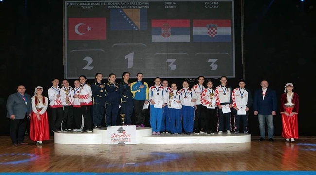 Sakarya Büyükşehir Belediyespor Kulübü Karate Takımı sporcuları 9-11 Aralık tarihleri arasında Bosna Hersek’in başkenti Saraybosna’da düzenlenen Ümit, Genç ve 21 Yaş Altı Balkan Şampiyonası’nda milli formayla ter döktü. Genç Bayan Kumite’de Rabia Kaplan turnuvayı 2.’likle tamamlarken; Büyükşehir sporcuları Fatih Şen ve Metehan Kabasakal’ın yer aldığı 21 Yaş Altı Takımı 3.’lük elde etti. Büyükşehir Belediyespor Kulüp Başkanı Orhan Bayraktar, milli formayla elde edilen başarıdan dolayı sporcuları kutladı.