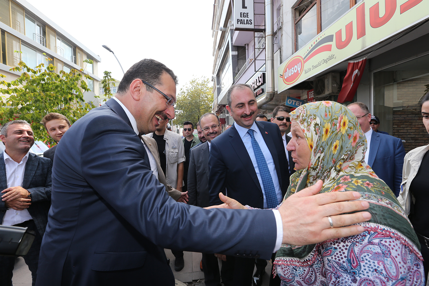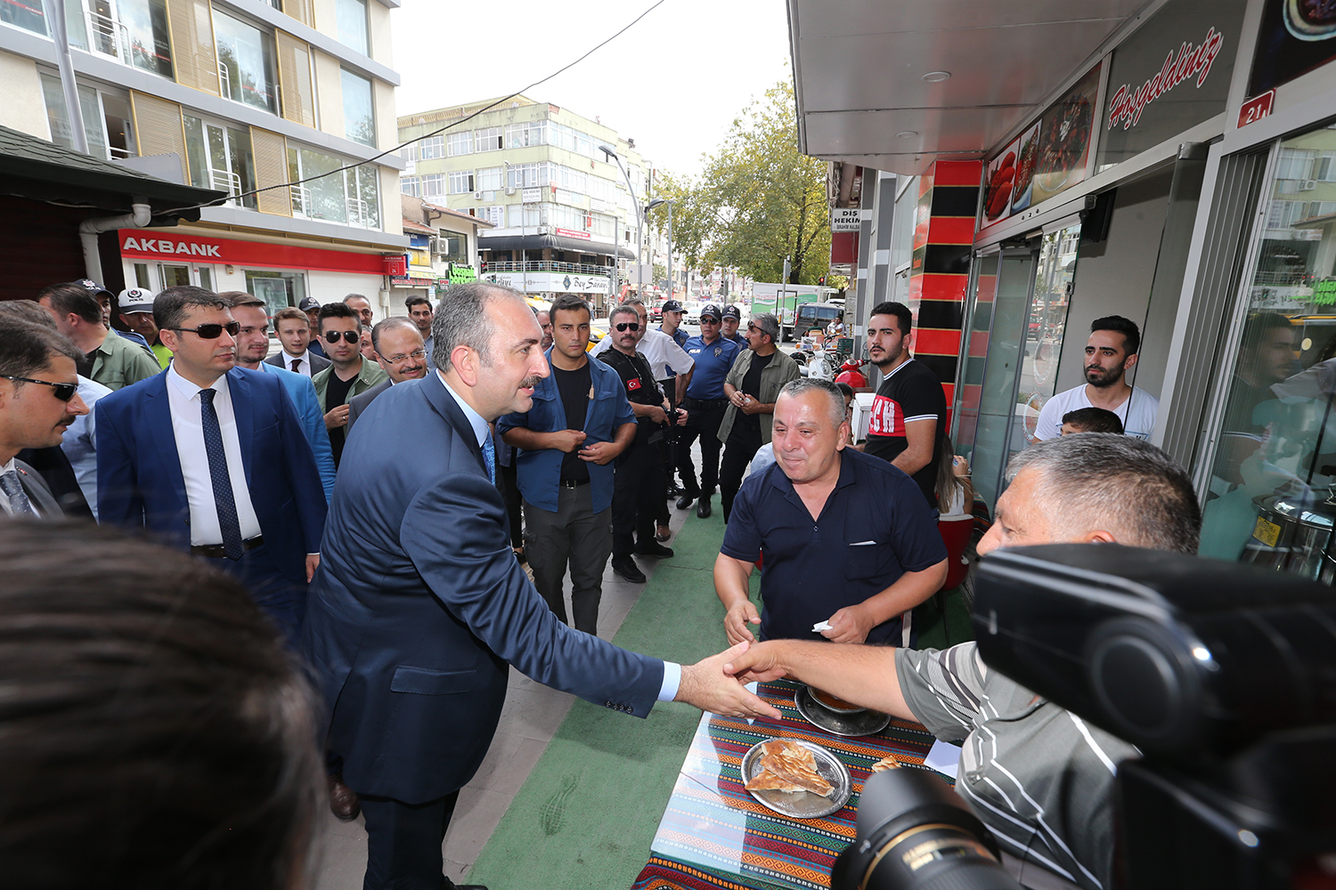 Bakan Gül, Büyükşehir Belediyesi ziyaretinin ardından şehir merkezinde esnaf ziyaretinde bulundu. Bölge Adliye Mahkemesi’nin açılışı dolayısıyla Sakarya’da bulunan Adalet Bakanı Abdülhamit Gül, Büyükşehir Belediyesi’ni ziyaret etti. Ziyarette Vali İrfan Balkanlıoğlu, AK Parti Genel Başkan Yardımcısı Ali İhsan Yavuz, AK Parti Milletvekili Recep Uncuoğlu, AK Parti İl Başkanı Fevzi Kılıç, Tugay Komutanı Tuğgeneral İdris Acartürk, SASKİ Genel Müdürü Dr. Rüstem Keleş, ilçe belediye başkanları ve bürokratlar yer aldı. Büyükşehir Belediyesi ziyaretinin ardından Bakan Gül şehir merkezinde esnaf ziyaretinde bulunarak, bereketli kazançlar diledi. Bölge Adliye Mahkemesi hayırlı olsunBakan Gül’ü Büyükşehir Belediyesi’nde ağırlamaktan duydukları memnuniyeti dile getiren Başkan Toçoğlu, “Uzun süredir şehrimizde inşa edilen Bölge Adliye Mahkemesi’nin açılışı için beklenti içerisindeydik. Vatandaşlarımızın da bu konuda talepleri oluyordu. Bugün açılışını gerçekleştirmiş olduk. Hem milletimize hem adalet camiasına hem de şehrimize hayırlı olsun. Bu özel günde şehrimize gelen Adalet Bakanımız Sayın Abdülhamit Gül’e teşekkür ediyorum” dedi. Hizmet aşkıSakarya’da olmaktan duyduğu memnuniyeti dile getiren Adalet Bakanı Abdülhamit Gül, “Büyükşehir Belediye Başkanımız Zeki Toçoğlu’na teşekkür ediyorum. Sakarya’ya hizmet aşkı ile dolu olan Başkanımız ile daha önce de çalışmıştık. Bugün de Bölge Adliye Mahkemesi’nin açılışı vesilesi ile Sakarya’dayız. Büyükşehir Belediyemizi de ziyaret ederek Başkanımız Zeki Toçoğlu’na başarı dileklerimizi ilettik. sakarya her geçen gün daha fazla gelişiyor, büyüyor. Hem hükümetimizin hem de yerel yönetimlerimizin yatırımları Sakarya’ya değer katıyor. Bugün açılışını gerçekleştirdiğimiz Bölge Adliye Mahkemesi de Sakarya’ya hayırlı olsun” dedi.