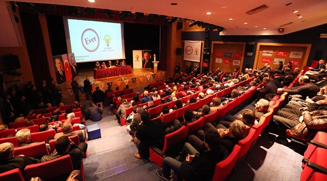 İlçe Teşkilatı’nın düzenlediği 47. Danışma Meclisi Toplantısı’nda konuşan Başkan Toçoğlu, “Tarihimizde ilk defa ayaklarımızdaki prangalardan kurtulacağımız ve rahatlıkla çok seri karar verebileceğimiz bir süreci inşallah başarıyla sonuçlandıracağız” dedi. AK Parti Milletvekili Uncuoğlu, “Bu değişiklik AK Parti veya Recep Tayyip Erdoğan için değil, milletimizin yarınları içindir” derken; Milletvekili Üstün ise; “Bu bir rejim değişikliği değil, hükümet sistemi değişikliğidir” ifadelerini kullandı.