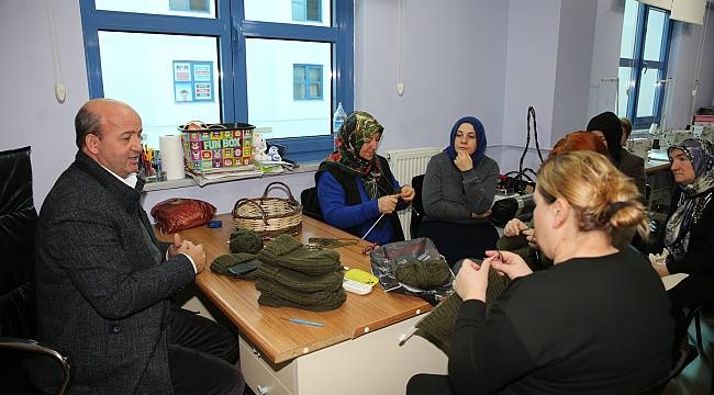 Adapazarı Belediyesi Camili Bilgievi elişi kursiyerleri, Suriye’de mücadele veren askerlerimiz için bere örüyor.