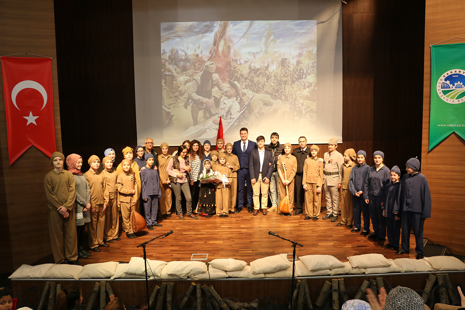 Sakarya Büyükşehir Belediyesi Sosyal Hizmetler Dairesi Başkanlığı Aile ve Çocuk Hizmetleri Şube Müdürlüğü tarafından Adapazarı, Sapanca, Geyve ve Akyazı Sosyal Gelişim Merkezleri’nde Çanakkale Zaferi coşkulu bir şekilde kutlandı. Adapazarı Sosyal Gelişim Merkezi’nde Çocuk Korosu eşliğinde ‘Bir Destandır Çanakkale’ isimli oyun sergilendi. Sapanca Sosyal Gelişim Merkezi’nde ‘Yıkılmaz Cephe Çanakkale’ isimli oyunu sergileyen minikler katılımcılara duygu dolu anlar yaşattı. Geyve ve Akyazı SGM’de çocukların tarihini bilmeleri için çocuk-yazar buluşması gerçekleştirildi. Programlara çok sayıda vatandaşın yanı sıra Sosyal Hizmetler Dairesi Başkanı Davut Yüce ve Aile ve Çocuk Hizmetleri Şube Müdürü Murat Kıroğlu katıldı.