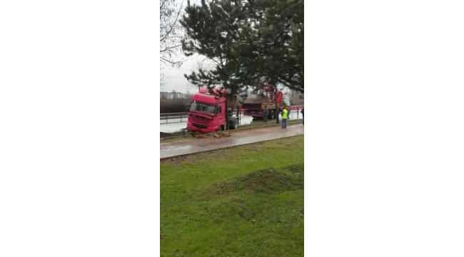 Adapazarı – Karasu çevreyolu istikametinde seyir halindeki tır makaslama yaparak yoldan çıktı.