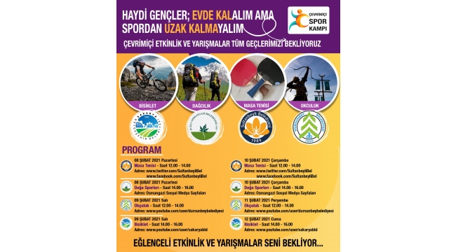 Sakarya büyükşehir Belediyesi Gençlik Hizmetleri ve Spor Dairesi Başkanlığı yarıyıl tatilinde gençleri spor aktivitelerden uzak tutmamak adına projeler geliştirmeye devam ediyor. AK Parti Yerel Yönetimler Başkanlığı tarafından hayata geçirilen ve Cumhurbaşkanlığı tarafından desteklenen ‘Gençlik Modellemesi’ projeleri gençlere rehber olmayı sürdürüyor. Büyükşehir’in ilk etkinliği 9 Şubat SalıGençlik Modellemesi kapsamında hayata geçirilen ve Osmangazi Belediyesi, Sultanbeyli Belediyesi ve Dursunbey Belediyesi ile ortaklaşa yürütülen, gençlere yönelik ‘Haydi Gençler; Evde Kalalım ama Spordan Uzak Kalmayalım’ başlıklı çevrimiçi etkinlikler başladı. Sakarya Büyükşehir Belediyesinin kurumsal youtube hesabı üzerinden yayınlanacak olan ilk canlı yayın etkinliği ise 9 Şubat Salı günü saat 14.00’te başlayacak. Bisiklet etkinlikleri Büyüşehir’denGençlik Hizmetleri ve Spor Dairesi Başkanlığı’ndan yapılan açıklamada, “Gençlik Modellemesi kapsamında hayata geçirilen ve Osmangazi Belediyesi, Sultanbeyli Belediyesi ve Dursunbey Belediyesi ile ortaklaşa yürüttüğümüz, ‘Haydi Gençler; Evde Kalalım ama Spordan Uzak Kalmayalım’ başlıklı çevrimiçi etkinlikleri başlıyor. İlk olarak Sultanbeyli Belediyesinin Masa tenisi aktivitesi ile başlayan etkinliklere Sakarya büyükşehir belediyesi olarak bisiklet branşında yer alacağız. 9 Şubat saat 14.00’te ve 12 Şubat Cuma günü saat 14.00’te www.youtube.com/user/sakaryabld hesabından canlı yayınlanacak olan bisiklet etkinliklerinde birbirinden güzel hediyeler gençlerle buluşturulacak. Gençlerimizin bu kısıtlama zamanlarında keyifli vakit geçirmemeleri adına yarıyıl tatillerine renk katmaktan mutluluk duyuyoruz” ifadelerine yer verildi.