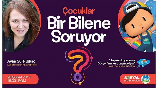 Büyükşehir Belediyesi SGM'de ikincisi düzenlenen ‘Çocuklar Bir Bilene Soruyor’ programında çocuklar, Pepee'nin yazarı ve Düşyeri'nin kurucusu Ayşe Şule Bilgiç ile 20 Şubat Çarşamba günü saat 15.30’da SGM’de buluşacak.