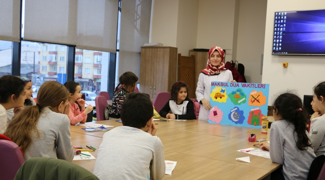 Sakarya Büyükşehir Belediyesi Sosyal Hizmetler Dairesi Başkanlığı bünyesinde faaliyet gösteren sapanca Sosyal Gelişim Merkezi’nde eğitimler devam ediyor. Kur’an-ı Kerim ve Değerler Eğitimi Atölyesi öğrencileri dönemi anlamlı bir etkinlik ile tamamladı. Önemli vakitlerde dua edilmeliKur’an-ı Kerim ve Değerler Eğitimi Atölyesi Eğitmeni Hatice Kübra Süfürücü, “Sınıf içi etkinliğimizde dinimizin temel değerlerinden biri olan ‘dua’ konusunu ele aldık. Dua elbette her zaman edilebilir ama özel vakitleri değerlendirmenin önemine dikkat çekmek amacıyla ‘Makbul Dua’ vakitlerini öğrencilerimize akılda kalıcı bir etkinlik üzerinden anlatmaya çalıştık” ifadelerine yer verdi.
