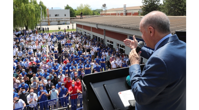 Erdoğan, Tank Paleti fabrikasını ziyaretinde yaptığı konuşmada, "Burası devletin malıdır, tapusu devlettedir. Öyle de kalacaktır. Fabrikanın işletmesini yürüten firma Türk firmasıdır. Fabrika kadrosundaki hiçbir çalışanımız hak kaybına uğramamıştır. Üretim TSK’nın ihtiyaç ve talepleri doğrultusunda askerlerimizin kontrolünde devam etmektedir. Katar, Katar diyorlar ya. Katar yüzde 49 finansal ortaktır. Yüzde 51 Türk ortaktır. Herkes bu fabrikanın satıldığını iddia ediyorsa bilin ki yalan söylüyor. Bay Kemal işi gücü akşam yalan, sabah yalan" dedi.Katar’ın çocuklarını, gençlerini tıp fakültesine sınavsız alındığı iddiasıyla ilgili olarak Erdoğan, "Böyle bir şey yok. Gel bunu ispat et. Hangi Katarlı öğrenciyi sınavsız aldık ispat et. Müddei iddiasını ispatla mükelleftir. İddianı ispat edemezsen namertsin. Yok böyle bir şey. Sen bizim gençlerimize hakaret ediyorsun. Bir gün önce bunu açıklıyorsun, bir gün sonra imtihanlar var" dedi.Erdoğan, "Her kim ordumuza ülkemize iftira atıyorsa, bilin ki millet düşmanıdır. CHP’nin başındaki bu zat yargı tarafından tazminat cezasına da çarptırılmıştır. Bunlarda Allah korkusu, kuldan utanma olmadığını gibi yargı kararlarına da saygı yoktur. Aynı yalanları tekrarlayıp duruyorlar. 2023 seçimlerinde de milletimiz bu yalancıları sandığı gömüp cevap verecektir. 6 ay sonra seçim var biz geliyoruz diyor. Sen bu 6 ayı daha çok konuşursun. Bizim seçim tarihimiz belli. Haziran 2023. Siyaset dürüstlük ister" dedi.
