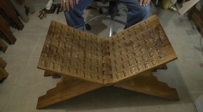 OkuntuGeleneklerin toplumu ayakta tutan yapı taşlarından biri olduğunu ve onları yaşatmak istediğini ifade eden Şaban Can, bu adetlerden birinin de “okuntu” olduğunu söyledi. Doğup büyüdüğü memleketi Kilis’te düğün davetiyesinin yanında kıymet verilen büyükler için bir hediye hazırlandığını ve düğün sahibi tarafından bu hediyenin o kişiye iletildiğini belirten Can; Bilal Erdoğan’a yaptığı eserin hikayesini de anlattı.10 Sene Önceki Niyeti Bugün GerçekleştiBu işe merak salmaya başladığı ilk zamanlarda işlemek için oduncudan ceviz ağacı aldığını ve bu ağacı ortadan ikiye kestiğinde ise daha önce görmediği bir figürle karşılaştığını belirten Şaban Can; üzerinde insan bedenini andıran figürün kendisini çok etkilediğini ve bunu oğlunun düğününde okuntu olarak büyüklerden birine vermek için hazırladığını dile getirerek, “Pilot olan oğlumun düğününde bir büyüğümüze vermek için ta o zamandan niyetine girdiğim ve hazırladığım rahleyi, Cumhurbaşkanımız Recep Tayyip Erdoğan’a okuntu olarak Sakarya’daki toplu açılış töreni programında hediye etmek istemiştim. Ancak Reis-i Cumhurumuza yoğun programında rahatsızlık vermek istemedim. Kısmet bugüneymiş. Sizin aracılığınızla bu rahleyi ve oğlumun düğün davetiyesini Cumhurbaşkanımıza iletmek istiyorum. Bundan 10 sene önce niyetlendiğim işi inşallah bugün sizin aracılığınızla hitama erdireceğim. Sayın Cumhurbaşkanımız eğer düğünümüze teşrif ederlerse bizi bu ahir ömrümüzde bahtiyar etmiş olurlar” dedi.Satmak Yerine Hediye Ediyor71 yaşındaki emekli makine mühendisi Şaban Can, uzun yıllar oymacılık ve Hüsn-i Hat ile uğraştığını ifade ederek, yaptığı eserleri satmak yerine sadece hediye etmeyi tercih ettiğini söyledi.Üzerinde insan iskeletini andıran, yaklaşık 1 metre uzunluğundaki ceviz ağacından yapılma rahlede, Esmaü’l Hüsna (Allah’ın 99 ismi) yazıyor. Bilal Erdoğan manidar hediyeden dolayı Şaban Can’a teşekkür ederken, rahleyi ve düğün davetiyesini cumhurbaşkanı Recep Tayyip Erdoğan’a ileteceğini söyledi.