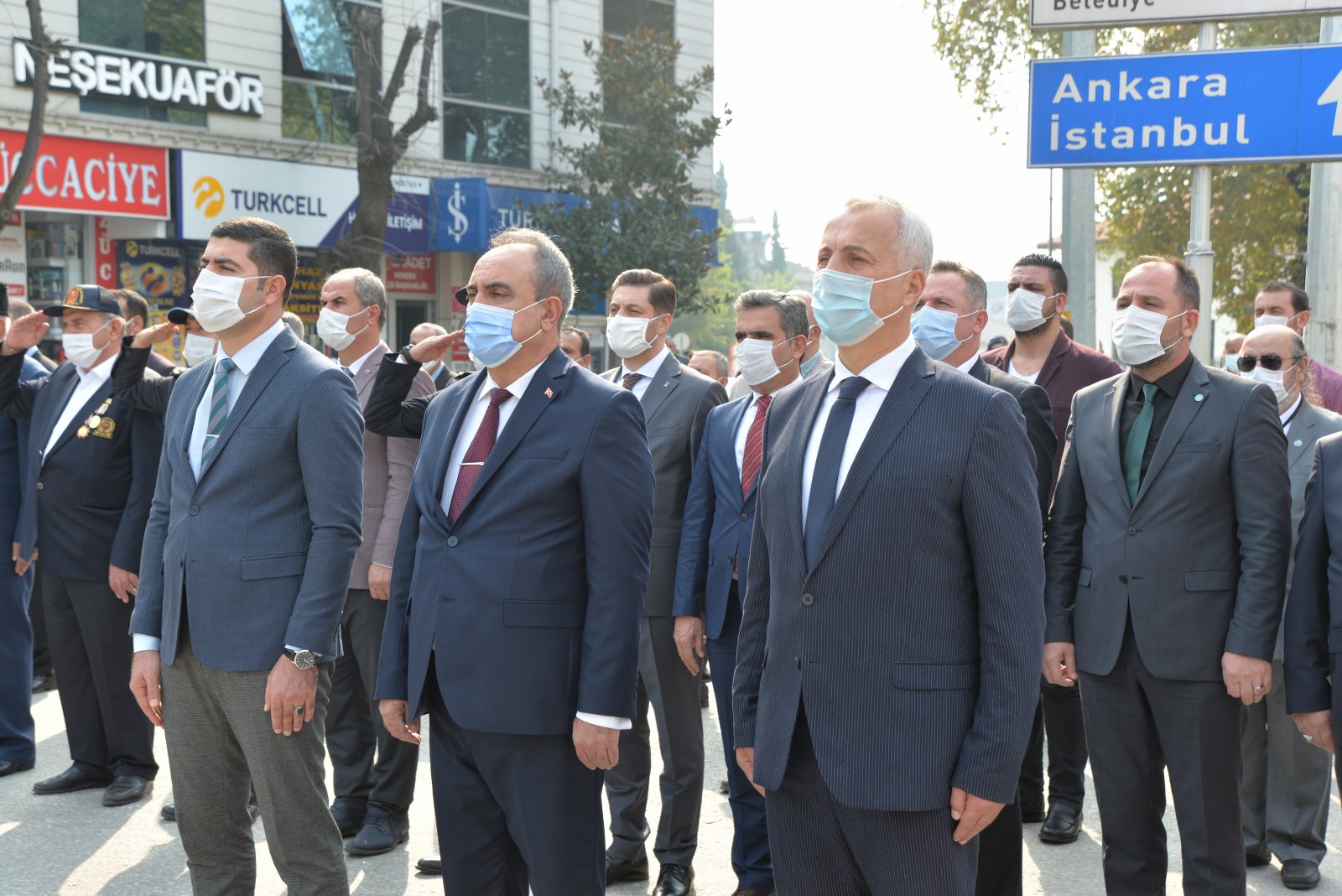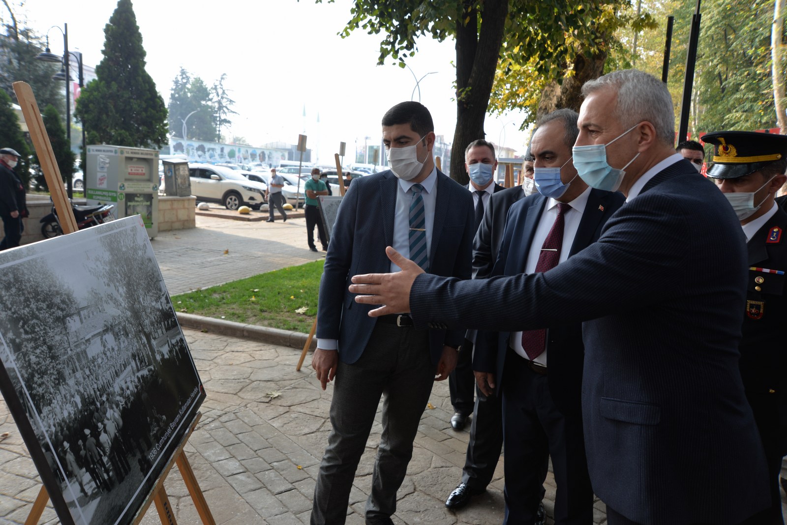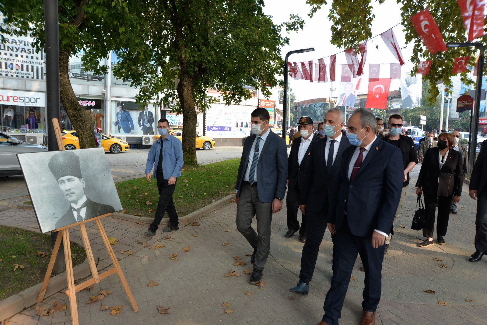 SALGIN TEDBİRLERİ Koronavirüs tedbirleri kapsamında düzenlenen törene Hendek Kaymakamı Halil İbrahim Acır, Hendek Belediye Başkanı Turgut Babaoğlu, Cumhuriyet Savcısı Sebahattin Erkaya İlçe Jandarma Komutanı Teğmen Hasan Alataş, İlçe Emniyet Müdürü Şevket İlhan, askeri erkan, emniyet teşkilatının mensupları, gaziler, siyasi partilerin ilçe başkanları, kurum müdürleri, bürokratlar katıldı. Atatürk Anıtına çelenk sunulmasının ardından İstiklal Marşı okundu ve saygı duruşunda bulunuldu.ATATÜRK VE CUMHURİYET Törenin ardından Kaymakam Acır, Başkan Babaoğlu, Cumhuriyet Savcısı Sebahattin Erkaya İlçe Jandarma Komutanı Teğmen Hasan Alataş Emniyet Müdürü Şevket İlhan ve protokol, belediye binası önündeki Muammer Sencer Caddesinde açılan Cumhuriyet ve Atatürk konulu sergiyi gezdi. Cumhuriyetimizin kuruluşu, Atatürk ve milli mücadele dönemini anlatan fotoğrafların bulunduğu sergi ilçe protokolünün yanı sıra vatandaşlar tarafından büyük beğeniyle karşılandı. Sergi bugün 20.00’ye, 29 Ekim günü de herhangi bir hava muhalefeti olmaması durumunda yine aynı saate kadar gezilebilecek.