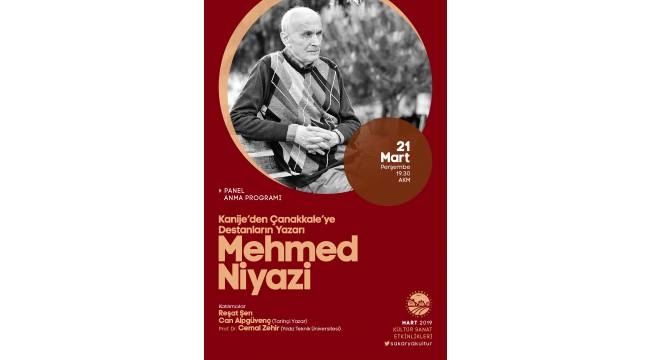Sakarya Büyükşehir Belediyesi Mart Kültür-Sanat Etkinlikleri ‘Kanije’den Çanakkale’ye Destanların Yazarı Mehmed Niyazi’ paneli ve anma programı ile devam edecek. 21 Mart Perşembe günü saat 19.30’da AKM’de gerçekleştirilecek panele Reşat Şen, Can Alpgüvenç ve Prof. Dr. Cemal Zehir konuşmacı olarak katılacak. Kültür ve Sosyal İşler Dairesi Başkanlığı tarafından yapılan açıklamada, “Mart Kültür Sanat Etkinliklerimiz ‘Kanije’den Çanakkale’ye Destanların Yazarı Mehmed Niyazi’ paneli ve anma programı ile devam edecek. Tüm hemşehrilerimiz davetlidir” ifadelerine yer verildi.