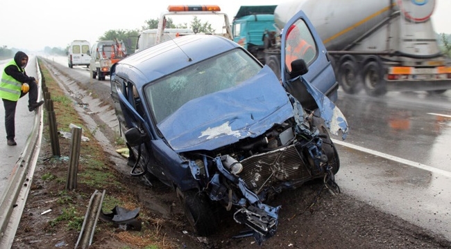 Yağmurunda etkisiyle kayganlaşan yolda direksiyon hakimiyetini kaybeden ticari otomobil sürücüsü bariyerlere çarparak durabildi. Meydana gelen kazada 3 kişi yaralandı.