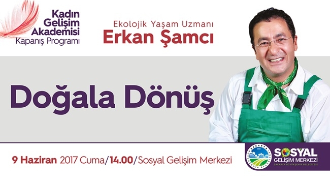 Sakarya Büyükşehir Belediyesi Sosyal Hizmetler Dairesi Başkanlığı tarafından başlatılan Kadın Gelişim Akademisi’nde eğitimler sona eriyor. Bu kapsamda 9 Haziran Cuma günü Ekolojik Yaşam Uzmanı Erkan Şamcı, ‘Doğala Dönüş’ konusuyla Kadın Gelişim Akademisi’nin konuğu olacak. Sosyal Gelişim Merkezi’nde gerçekleştirilecek program saat 14.00’da başlayacak. Sosyal Hizmetler Dairesi Başkanlığı’ndan yapılan açıklamada, “Erkan Şamcı’nın katılacağı ‘Doğala Dönüş’ konulu programa tüm halkımız davetlidir” denildi.