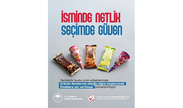 Tarım ve Orman Bakanlığı, dondurulmuş ürünlere yönelik yeni düzenlemeyi kamuoyuyla paylaştı. Bakanlık, sosyal medya hesabından yaptığı açıklamada “İsimde netlik, seçimde güven” başlığıyla duyurduğu uygulamayla, yenilebilir buzlu ürünlerin etiketlerinde tüketiciyi yanıltan ifadelere son verdi.