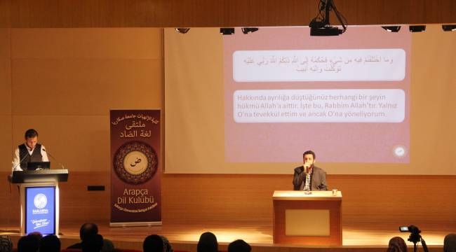 Programın açılış konuşmasını İlahiyat Fakültesi Dekanı Prof. Dr. Ahmet Bostancı yaptı. UNESCO Yürütme Kurulun tarafından 18 Aralık tarihinin Dünya Arapça Günü olarak ilan edildiğini belirten Prof. Dr. Bostancı, konuşmasında Arapçanın öneminden bahsetti. Kur’an-ı Kerîm’in ve İslamî ilimlerin kaynaklarının dili olması dolayısıyla Arapça’nın Müslümanlar için çok önemli olduğunu kaydeden Bostancı, “Dünya genelinde Müslümanlar için vahiy dili olarak kabul gören Arapça, kültürel mirasımızın dili olması bakımından da yeni nesiller tarafından öğrenilmesi kaçınılmaz bir dildir” dedi. Bostancı, “Arapça, günümüzde önemini ve dünya dilleri arasındaki etkinliğini gittikçe artıran bir dil olması hasebiyle ülkemizde de günden güne daha büyük bir taleple karşılaşılmaktadır. Arapça Dil Grubu Öğrenci Topluluğumuzu bu anlamlı gün münasebetiyle düzenledikleri etkinlikten dolayı kutluyorum” ifadelerini kullandı.