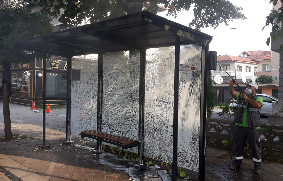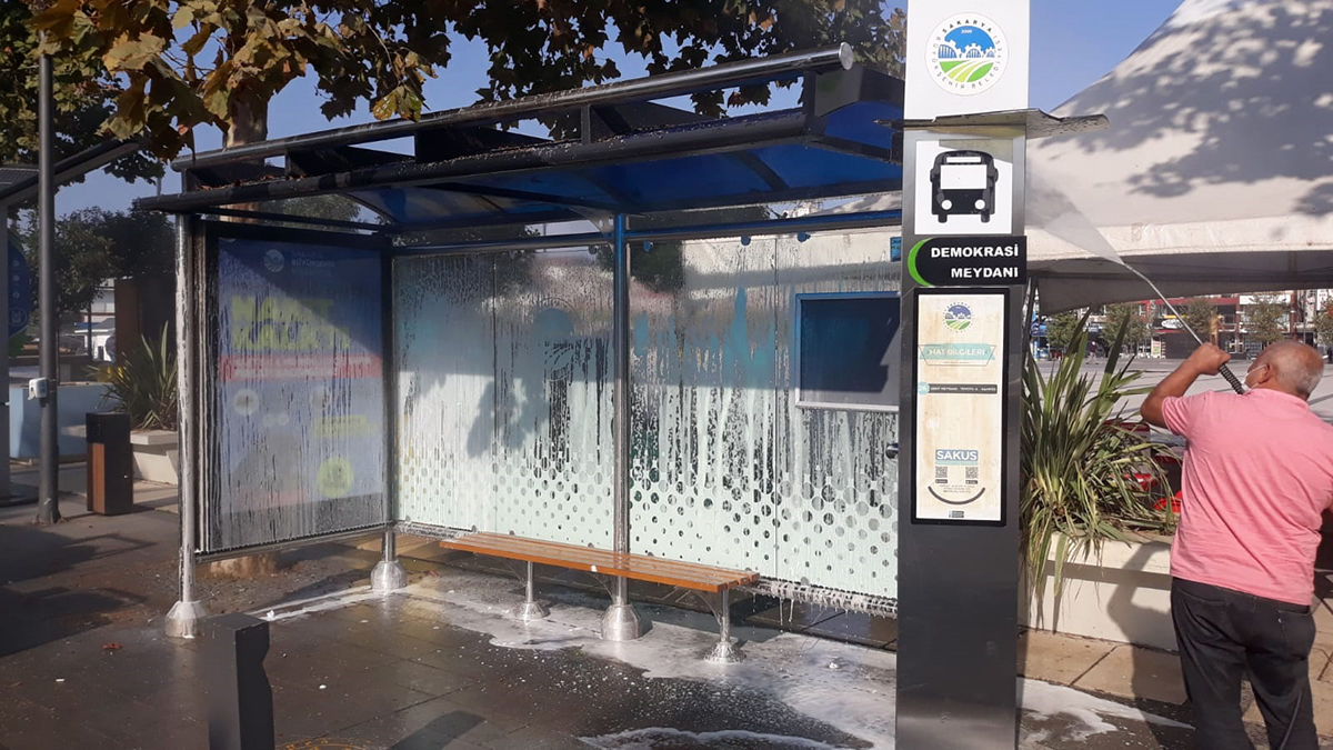 Sakarya Büyükşehir Belediyesi Ulaşım Dairesi Başkanlığı tarafından şehrin muhtelif yerlerindeki yolcu duraklarında yapılan temizlik çalışmaları tüm hızıyla devam ediyor. Ulaşım Dairesi Başkanlığı’ndan yapılan açıklamada, “Durak yıkama ekiplerimiz tarafından şehrin muhtelif yerlerindeki yolcu duraklarında temizlik çalışmalarımız devam ediyor. Koronavirüsle mücadelede ortak kullanım alanları arasında yer alan yolcu duraklarına yönelik dezenfekte çalışmalarımızı titizlikle sürdüreceğiz” denildi.